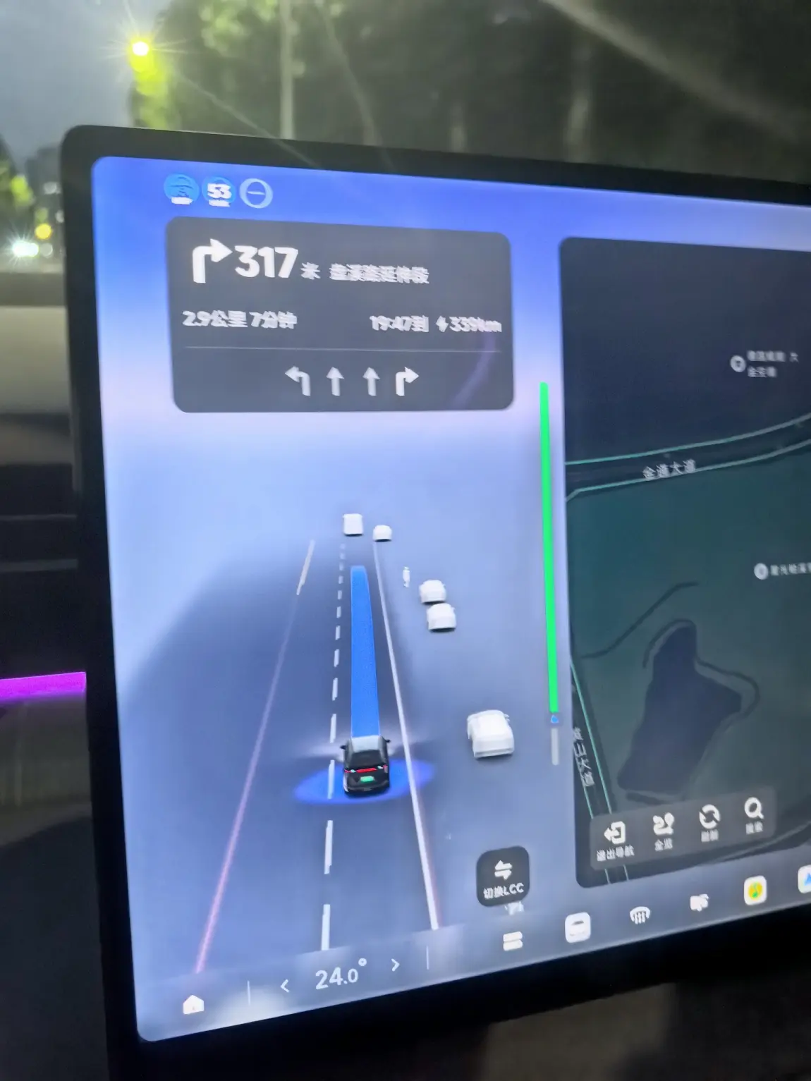 跟车非常丝滑,不会急刹也不会拖沓,跟车距离控制得刚刚好;