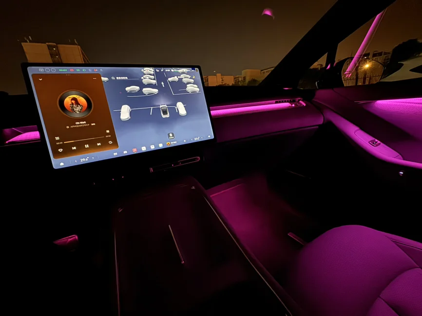 • 细节加分:全车座椅通风/按摩、双层隔音玻璃、氛围灯、高品质音响,下班路上打开按摩和音乐,一天的疲惫都能缓解,通勤也变成了享受;提车时车辆已经充满电,交付中心还准备了零食饮品,细节服务超贴心。