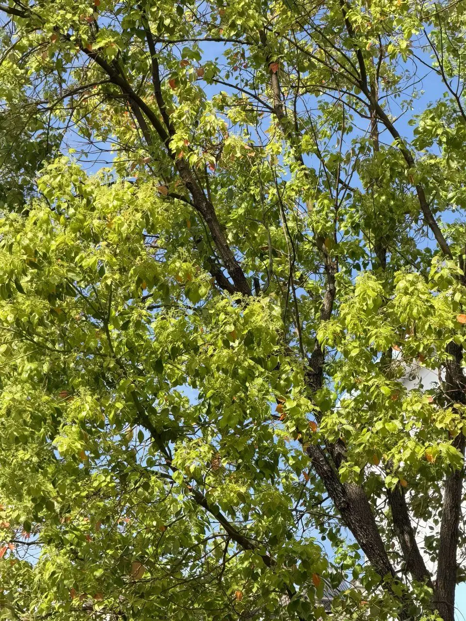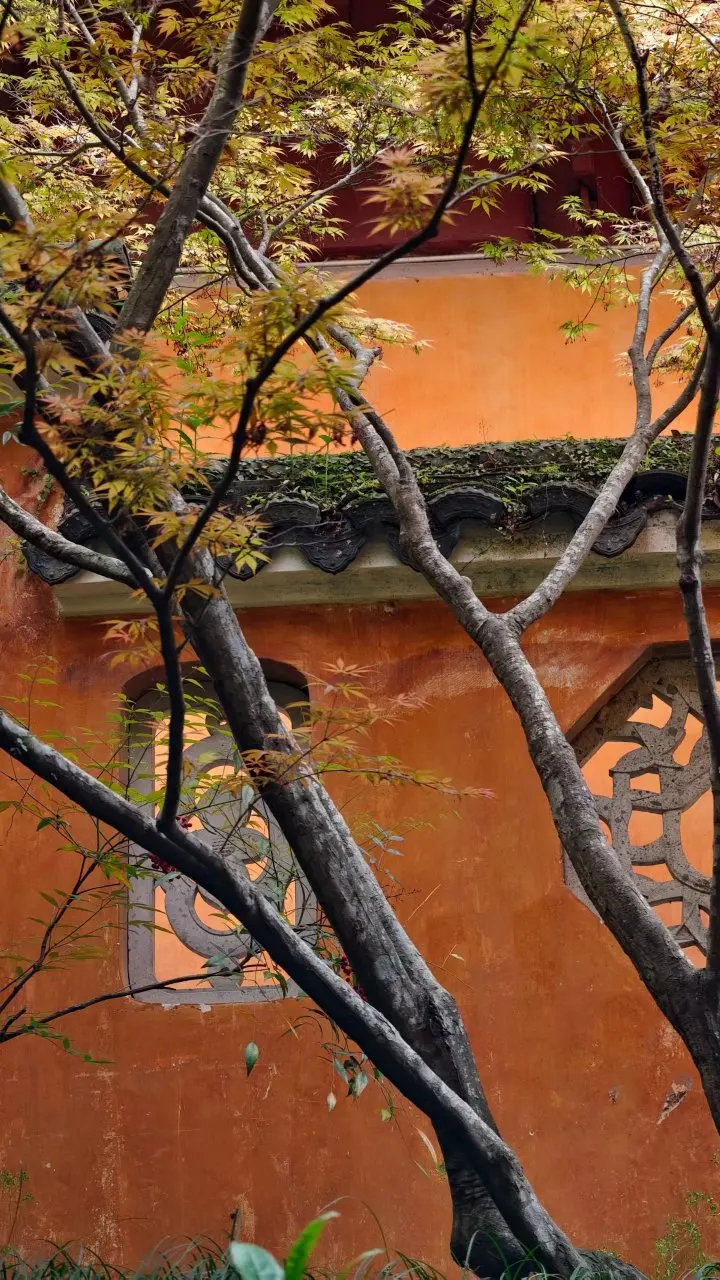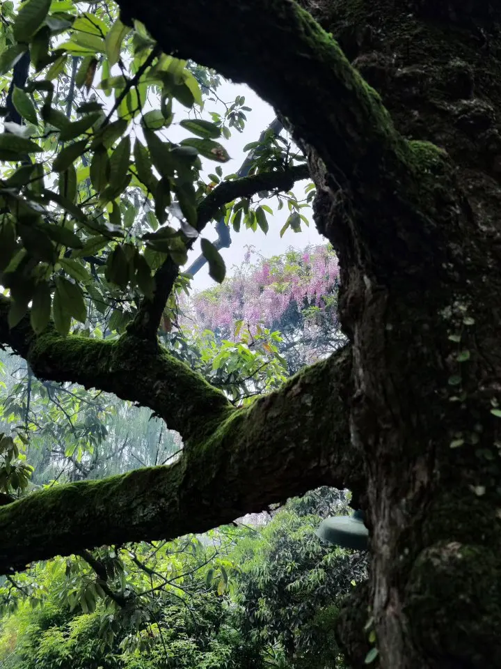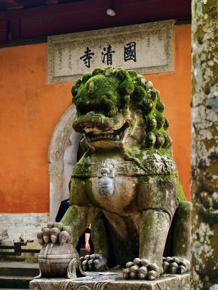 最后到了国清寺,一下子就从热闹的春天里,掉进了安静的青绿色里。寺外的古树长得比屋顶还高,叶子密得遮住了半边天,阳光从叶缝里漏下来,在地上织成细碎的光斑。走进寺里,青石板路被踩得发亮,隋塔立在远处,灰扑扑的砖缝里长着青苔,连空气里都飘着淡淡的檀香味。我坐在寺里的石阶上,听着远处的钟声,看着眼前的青绿,刚才在花田和夕阳里攒下的热闹,慢慢变成了心里的静。