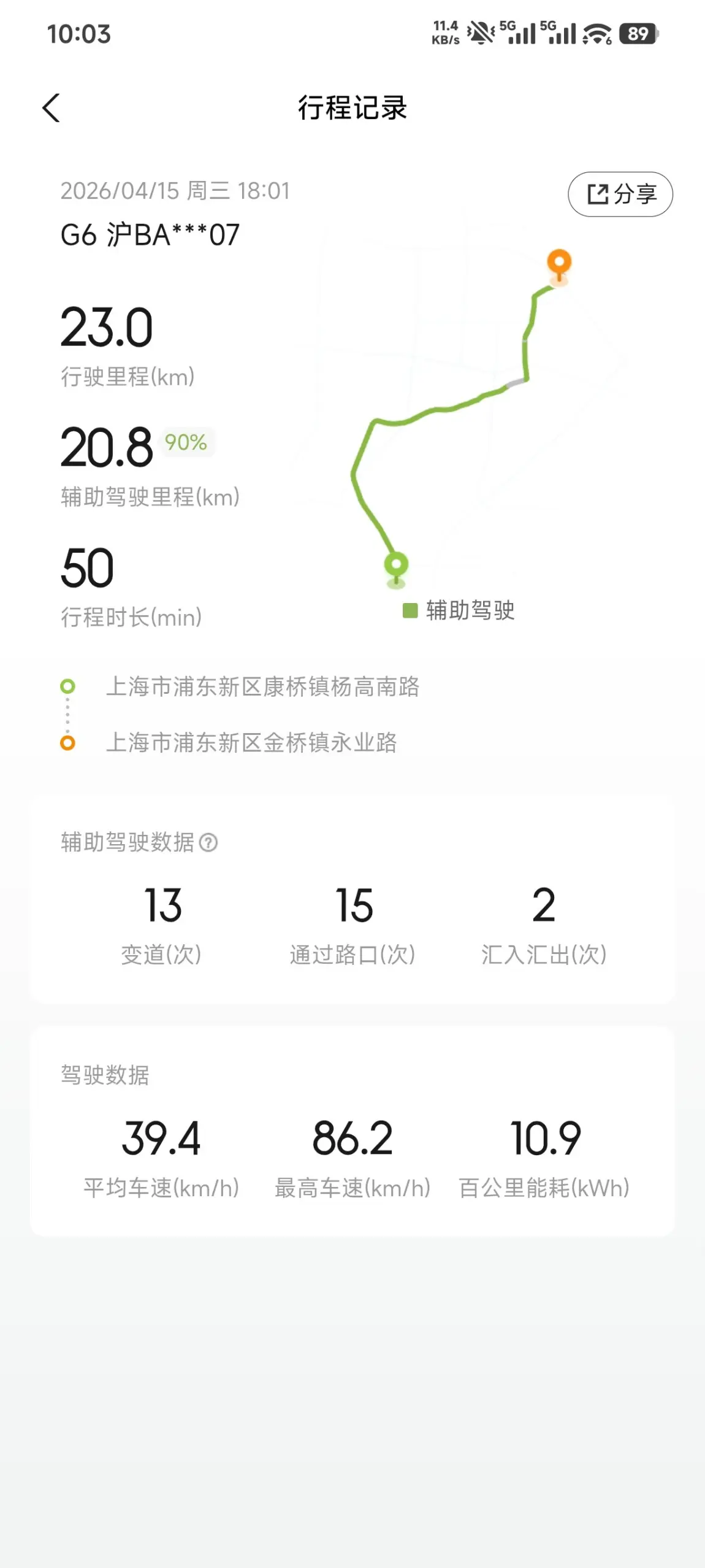 高架堵车走走停停,跟车距离调到最近,几乎没有被加塞的机会。全程高架段0接管,甚至比我平时自己开还稳。