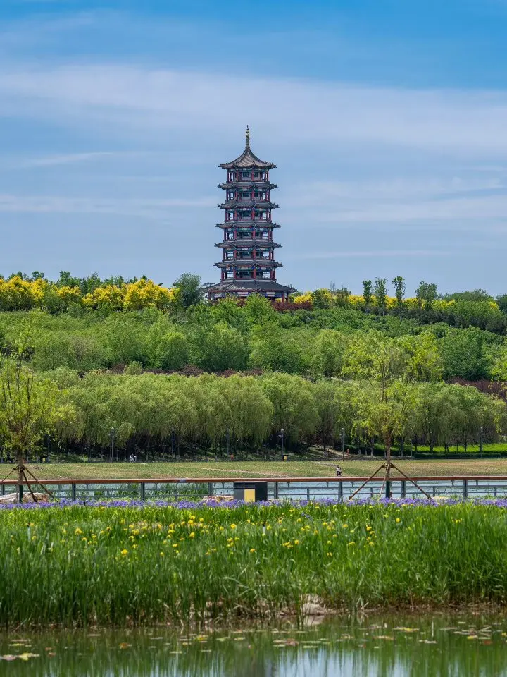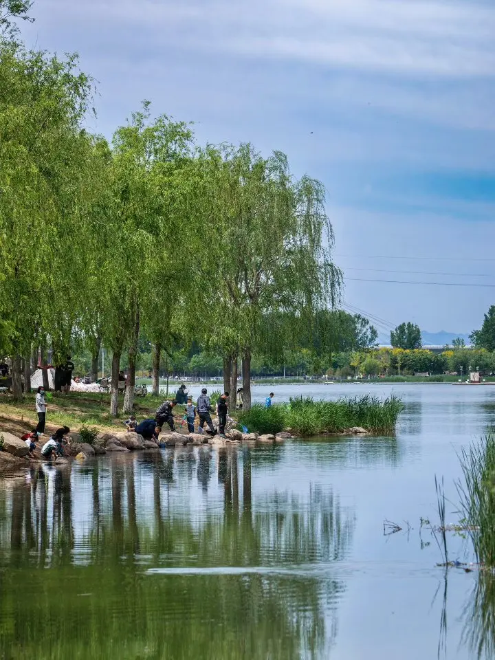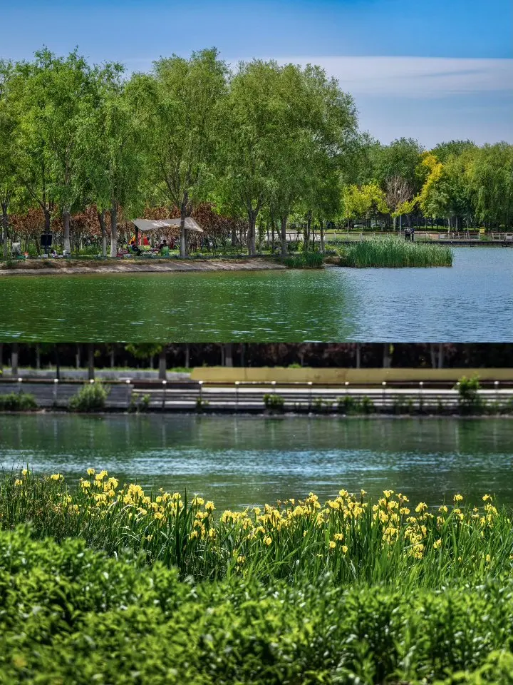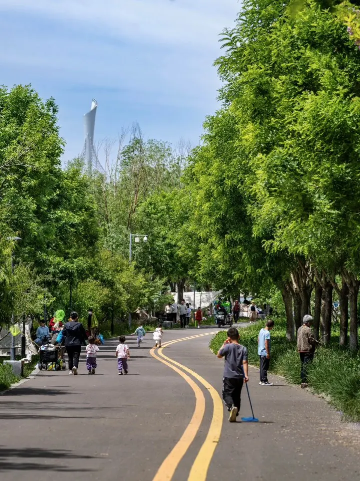 园中的小路,蜿蜒在一片绿意之中。在路上漫步,远处是城市与自然交融的宏大画卷,近处是一群群围着帐篷享受欢乐的人,自己也不觉沉浸在这美好之中。 踱步到湖南岸,可以打卡著名的“我爱石家庄”网红标牌。再向南去,还可以走近精致的晓月湖,更近距离地欣赏揽秀塔等景观,感受滹沱河的魅力。