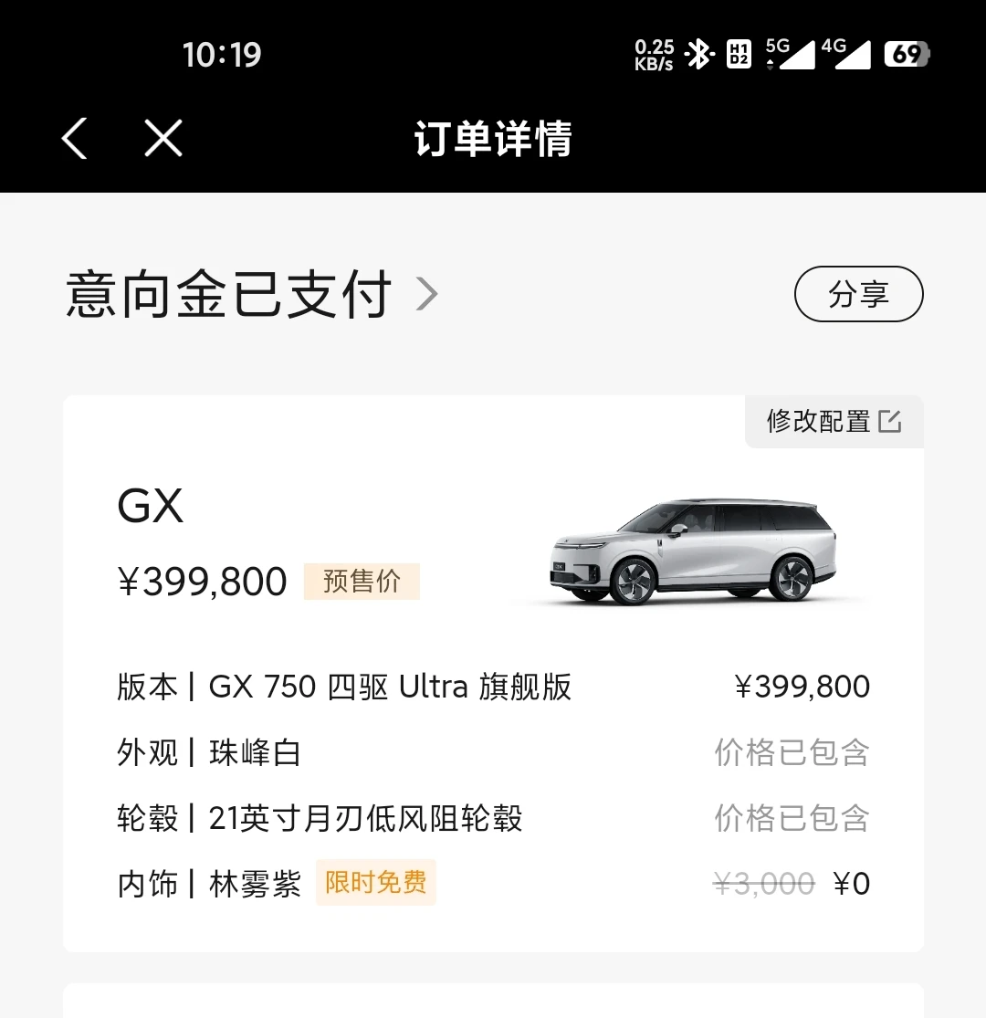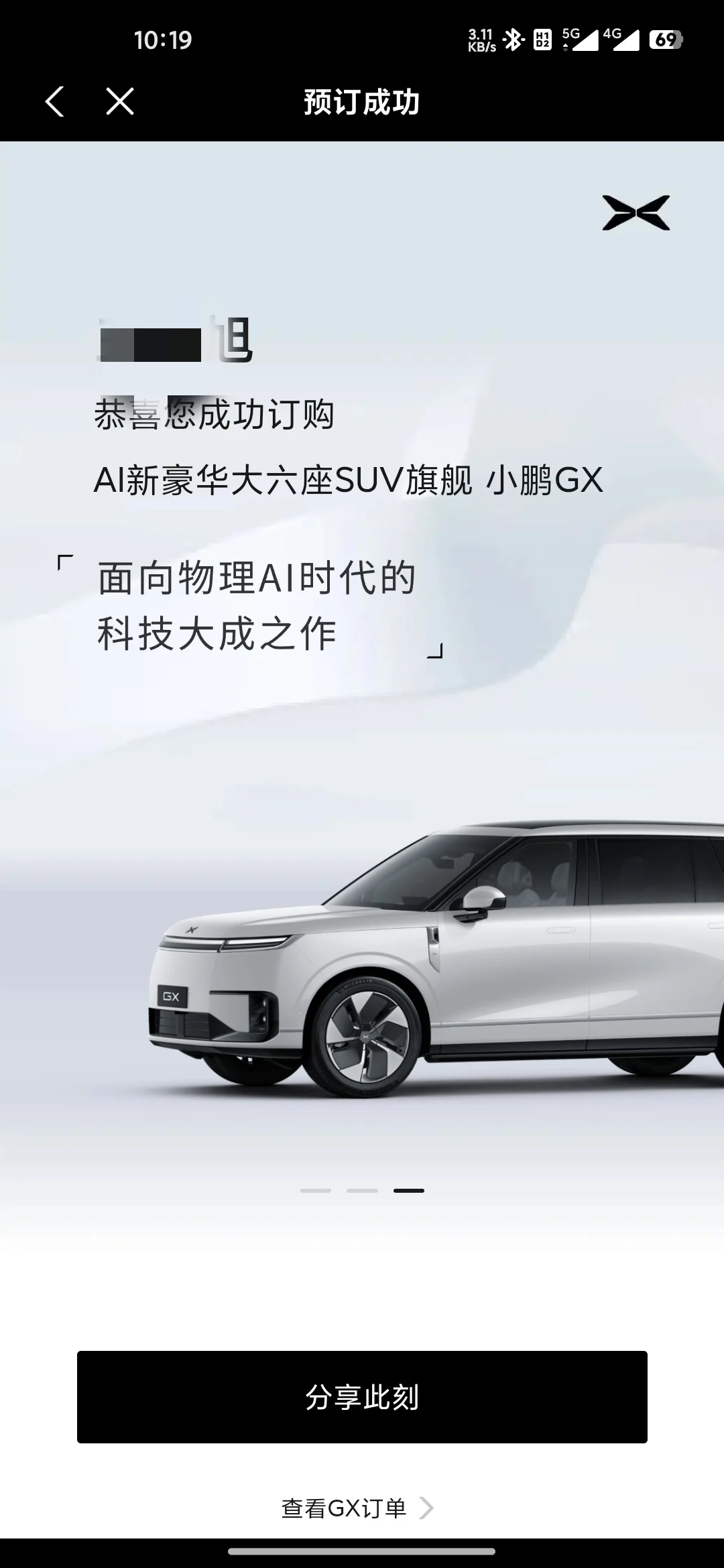 谁懂啊!果断下手小鹏GX 750四驱Ultra旗舰版,预订成功的瞬间直接开心到转圈~珠峰白车身颜值拉满,还薅到林雾紫内饰限时免费的福利,这波性价比直接焊死!🔒