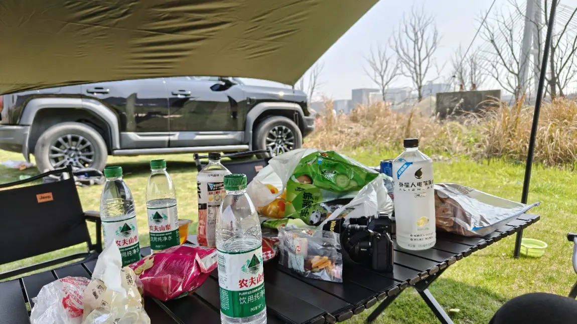 到了公园,找了一片临溪的草坪扎营。阳光洒在苕溪水面上,碎金一般。小狗在草地上撒欢跑了几圈,又跑回来蹭我的手,讨零食吃。支起椅子,吃着零食,看着它在阳光下打滚,突然觉得,所谓治愈,大概就是这样的周六——一台能装的车、一条黏人的狗、一条安静的溪,一群好伙伴,还有一个不用赶时间的下午。