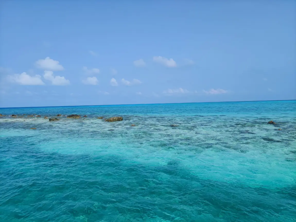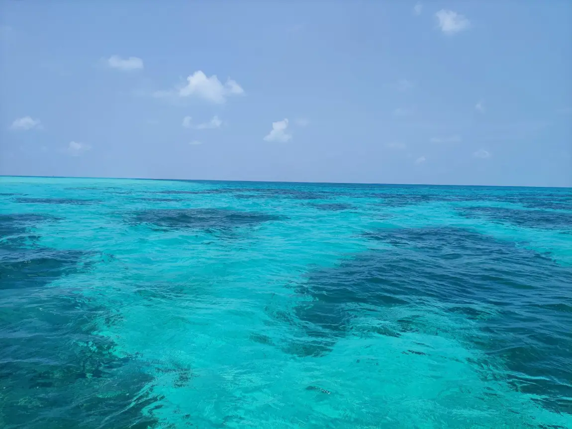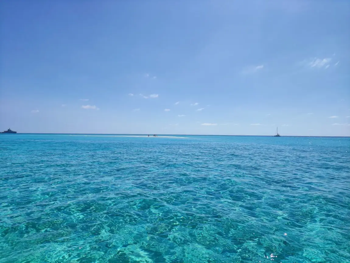 船行海上,海水像被打翻了的调色盘,从近岸的清透浅绿,到远海的深邃墨绿,层次分明得像流动的翡翠。阳光洒在海面,碎金般的波光在绿浪上跳跃,水下的珊瑚礁清晰可见,连呼吸都变得清甜。踩在细软的白沙滩上,眼前是漫无边际的绿,远处是守护海疆的舰艇,这一刻才真正懂了“一半是仙境,一半是家国”的震撼。