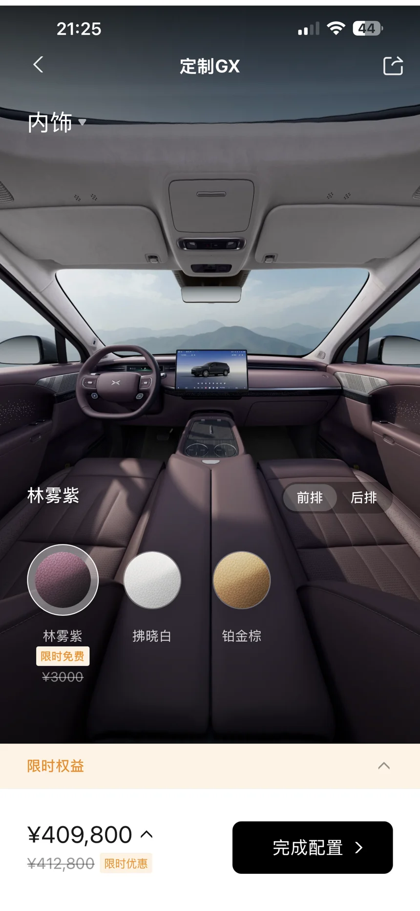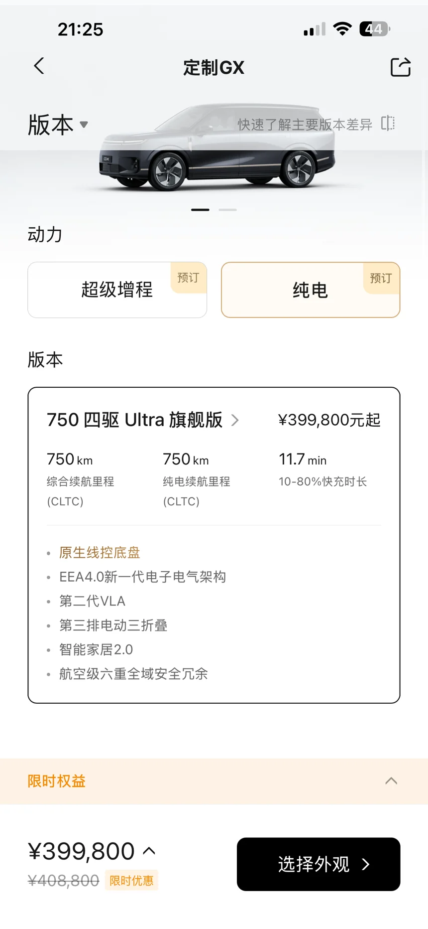 预售统一价39.98万,1000元抵5000元,限时送专属车漆与内饰。