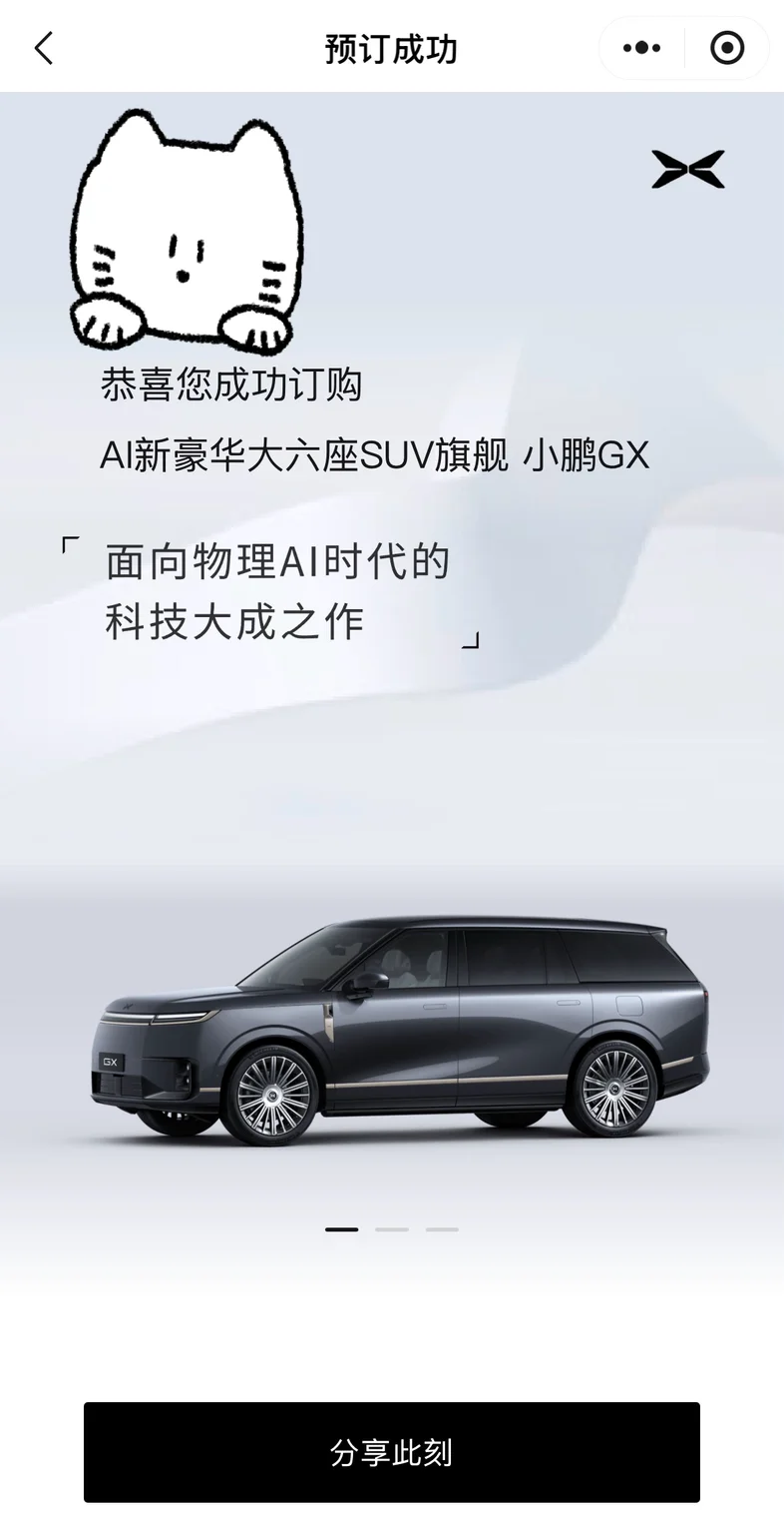 终于!锁定人生第一台全尺寸旗舰——全新小鹏GX!从发布会亮相就被它的百万级气场彻底征服,昨晚预售开启,毫不犹豫下订,这份激动必须记录!5.2米的庞大车身,游艇级流线造型,每一寸线条都写满大气与高级。最爱的就是那行业最大的寰宇天地一体式贯穿灯带,340颗LED光源点亮瞬间,科技感与豪华感直接拉满,夜晚行驶辨识度无敌。22英寸悬浮轮毂搭配超宽鸳鸯胎,气场碾压同级,停在路边就是移动的焦点。不只是好看,更是实力。0.255Cd超低风阻,隐藏式水切与纯平侧窗,细节尽显旗舰质感。39.98万起,拥有百万级的气场与设计,这波真的太值!坐等提车,未来出行,由GX定义!#小鹏GX开启预售#
