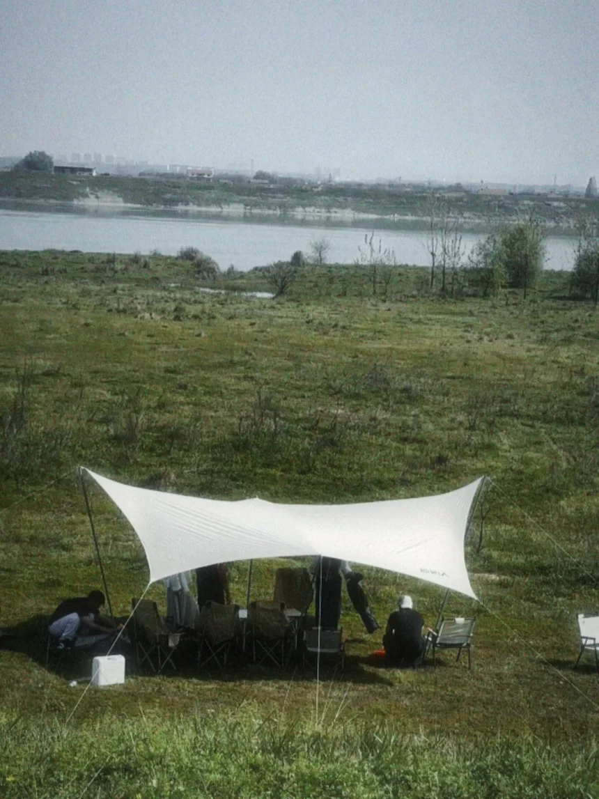 车窗外高楼渐退,澄澈江面与青草地铺展开来,坡上黑山羊悠闲踱步,江风裹挟着青草香扑面而来。用小鹏Mona 03的外放电功能保障全程用电,撑开白色天幕,搭好户外客厅,江风穿堂而过,驱散春日燥热。
