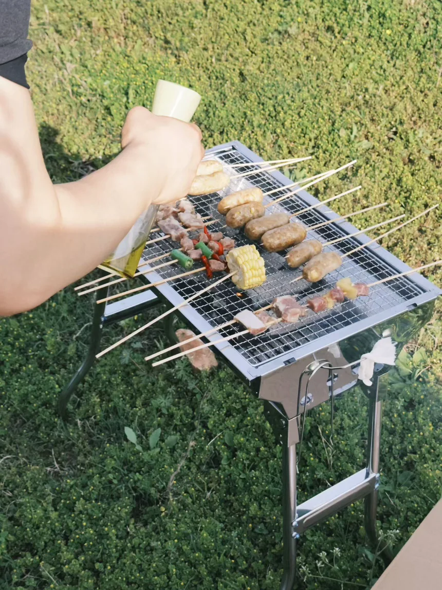 烧烤架上,肉串滋滋冒油,香肠焦香四溢,玉米甜香弥漫,烟火气升腾间,满是鲜活滋味。车载音响流淌着喜欢的旋律,好友围坐闲谈,看江面映着天光,看夕阳染红河岸。
