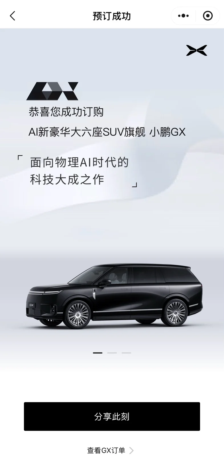 喜订小鹏GX!把未来科技与顶级豪华搬进日常出行,这就是我毫不犹豫下订的理由!作为科技控与品质党,GX的每一项配置都精准戳中我的心巴。全球首发的AI调光隐私玻璃,0.16秒极速变色,防晒隔音一键切换,二三排独立控制,随时随地拥有私密头等舱。还有行业首创的AI无菌双开门冰箱,-6℃至50℃超宽温域,冰饮热饮随时安排,长途自驾幸福感爆棚。大六座布局,零重力座椅+第三排180°电动平躺,全车六座皆C位,家用出行奢享拉满。17.3英寸3K大屏+33扬声器聆境音响,打造移动影音宫殿。从智能交互到舒适配置,全是百万级黑科技#小鹏GX开启预售#