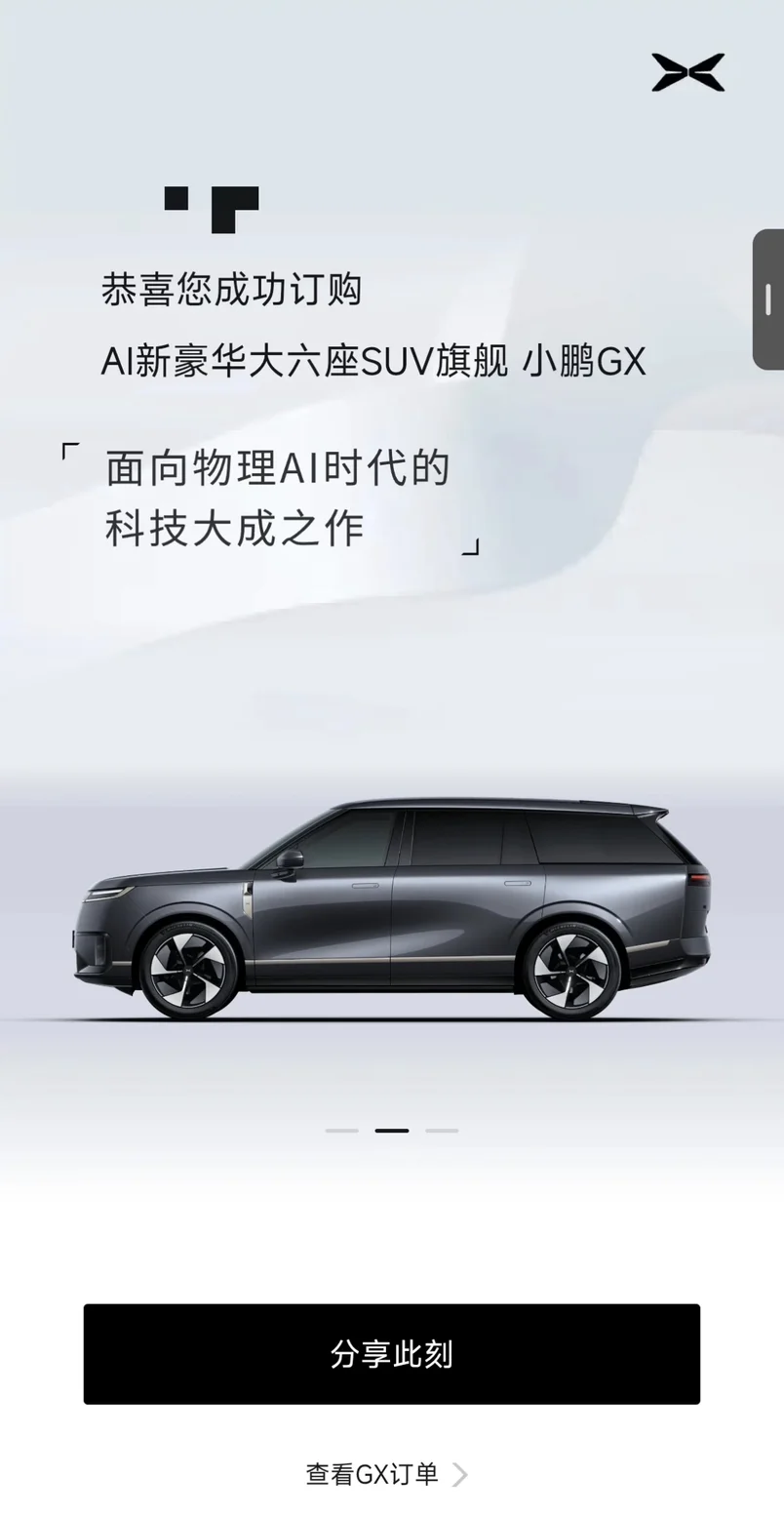 晒出我的小鹏GX预售订单✨锁单小鹏GX!安全感直接拉满!小鹏GX预售价39.98万元起,看到价格果断下定,最打动我的就是它的顶级安全配置。全尺寸旗舰车身搭配航天级用材,车身刚性拉满,被动防护直接拉到天花板级别。L4级冗余安全架构,多系统备份护航,即便在极端场景下也稳如泰山。再加上3000TOPS超强算力,智驾预判更精准,主动避险更及时。AI调光隐私玻璃兼顾隐私与安全,一体式灯带辨识度超高,夜间行车也更安心。39.98万起即可拥有百万级的安全与豪华,为自己和家人选择最稳妥的守护,这波真的太值!