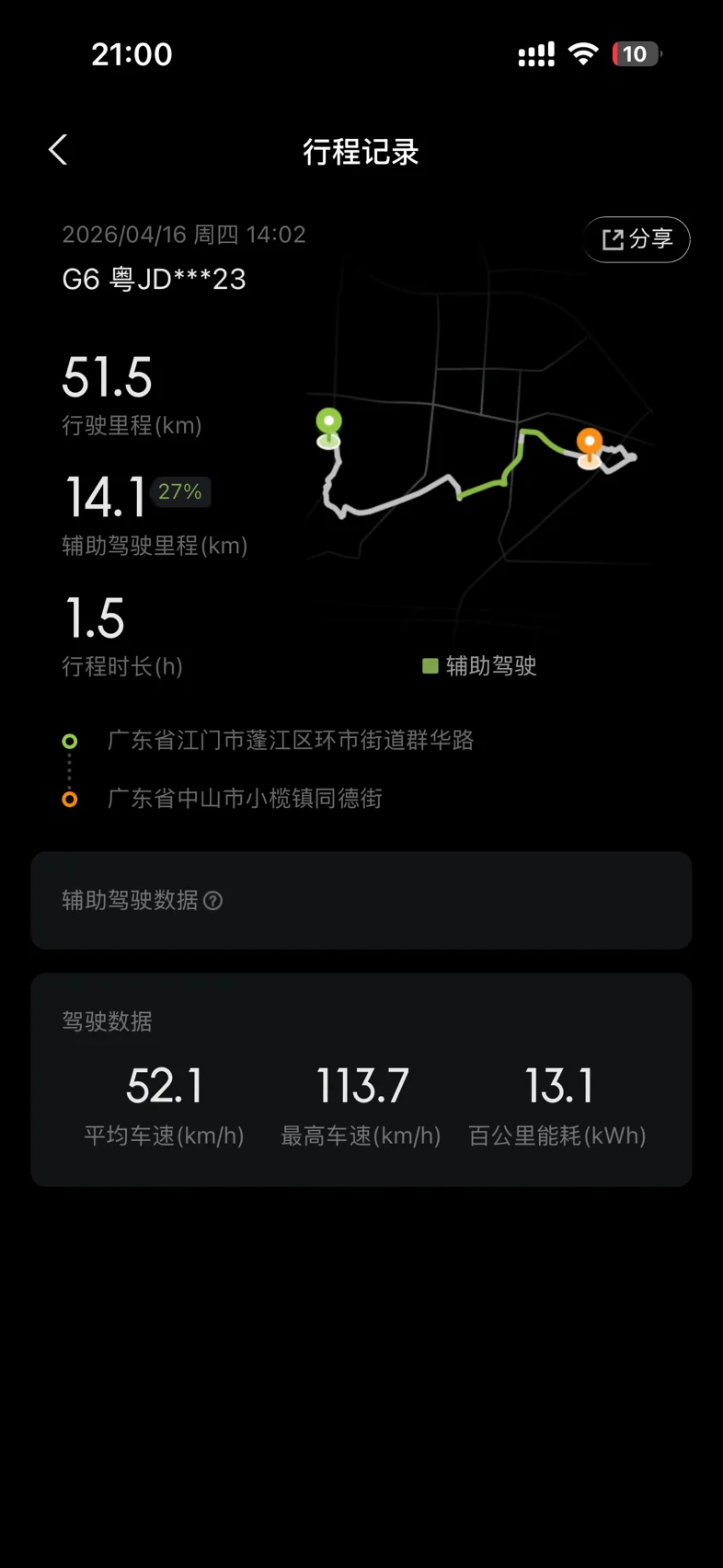 这次开着G6跑了趟小短途,直接被它的表现圈粉!51.5km的路程,有14.1km都是NGP辅助驾驶,不用一直紧绷着神经踩油门刹车,简直是出行救星✨