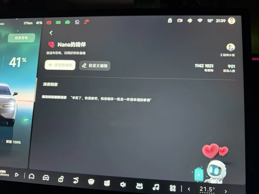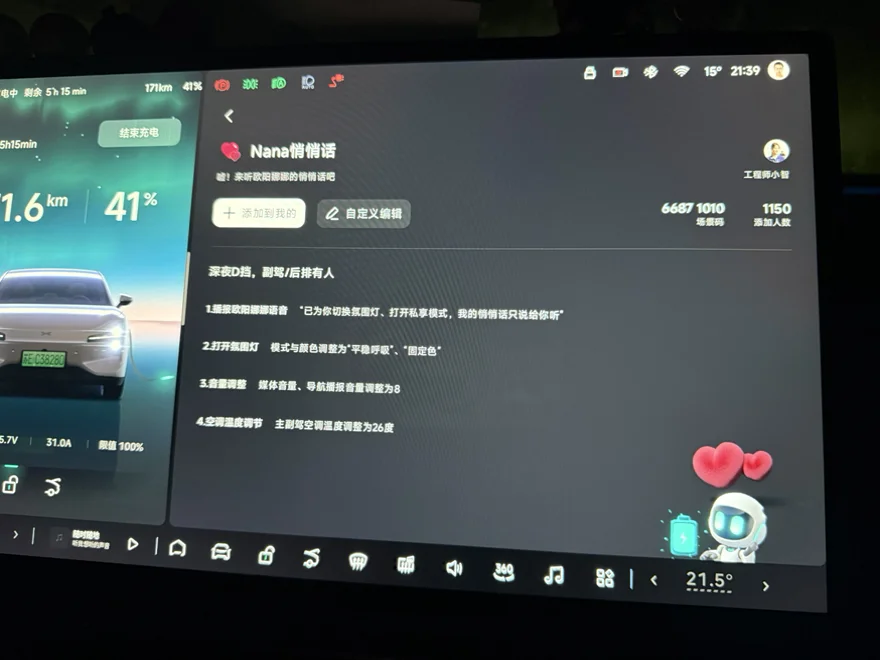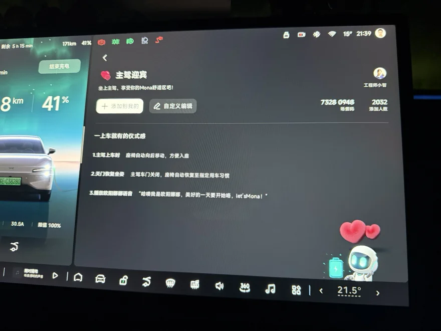 欧阳娜娜智慧场景简直是情绪价值拉满的出行搭子!上车自动播放她的元气语音,氛围灯随心情切换,深夜回家还有温柔陪伴。连空调、音量都贴心调好,仪式感与实用性兼备,每次驾驶都像被偶像“专属宠爱”,幸福感爆棚~ 每次听到娜娜的声音很治愈哦。#小鹏汽车 、#小鹏MONA、#欧阳娜娜坐上我的小鹏MONA副驾#。