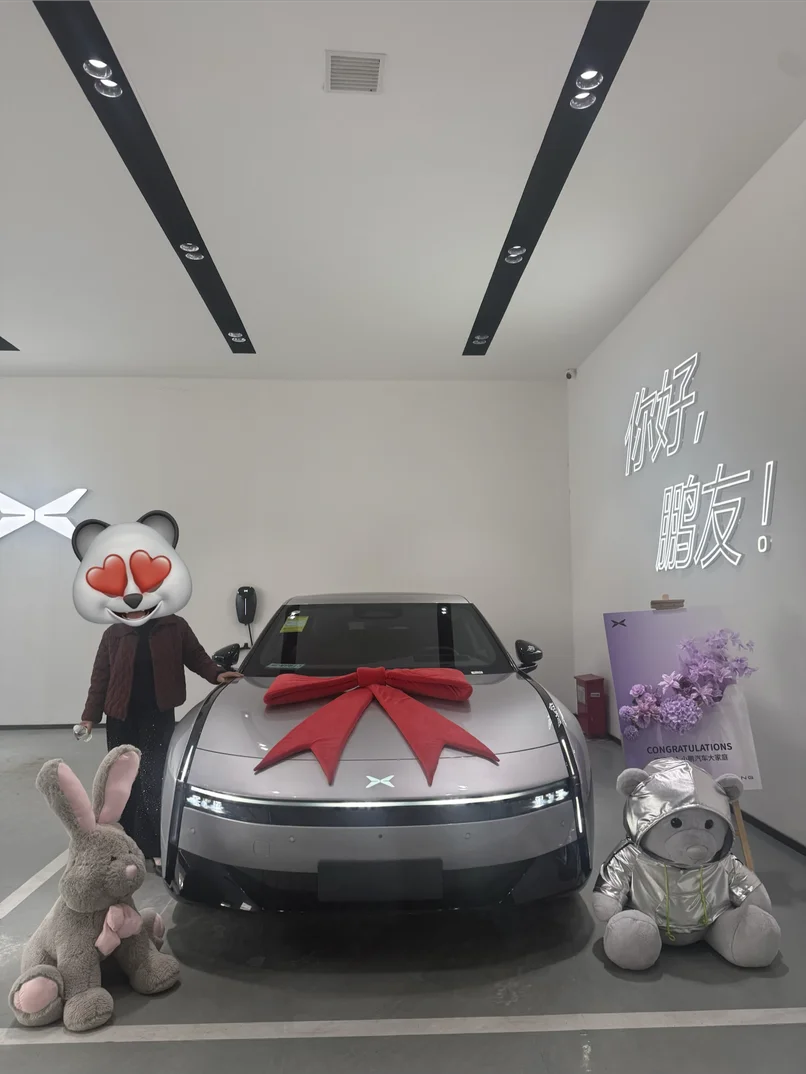 一到交付中心,工作人员就很热情地迎接,还准备了精致的点心和饮料,说“提车是大事,别饿着肚子办手续”。整个流程大约2小时搞定:先仔细验车,核对车架号和车况;再由工作人员陪同办理选号、临牌;接着帮忙拍提车照,挂上大红花的仪式感拉满;最后拿到卡片钥匙,成功喜提!交付顾问还送了小鹏公仔,抽盲盒抽到喜欢的小灰熊,开心!
