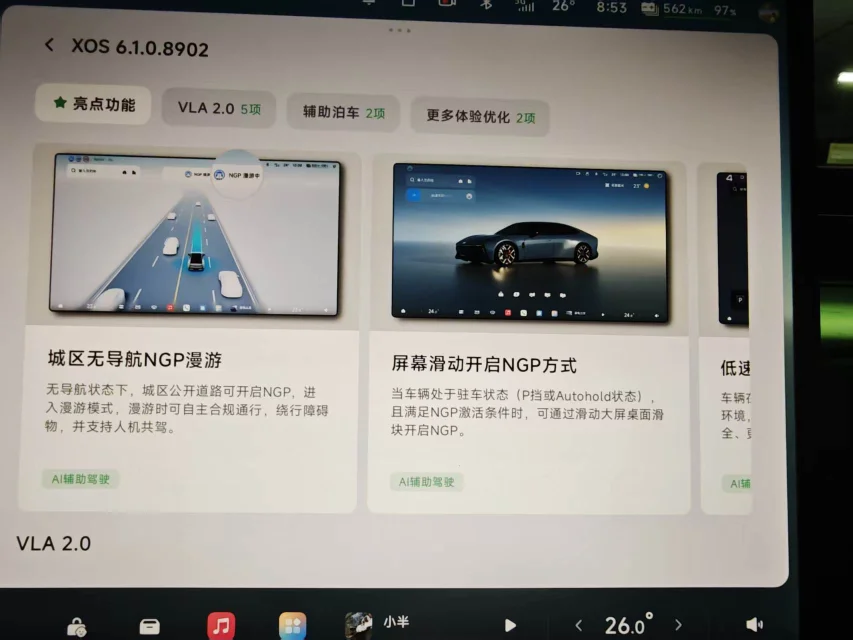 我的小G7 小鹏VLA 2.0升级激动的心,G7的2.0推送虽然有点滞后,但是也终于迎来了升级,迟到的惊喜,必定是精心的打磨,2.0可以说是整个大模型翻天覆地的升级,以前一定要行驶中才能开启NGP,现在随时随地,只要条件允许,只要你需要,我的AI代驾随时随地满足我。 #小鹏汽车 #小鹏第二代VLA有点东西;#小鹏G7