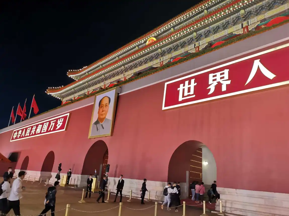 还有夜幕下的天安门城楼,朱红的宫墙、鲜红的标语,每一处都在诉说着岁月的厚重与荣光。