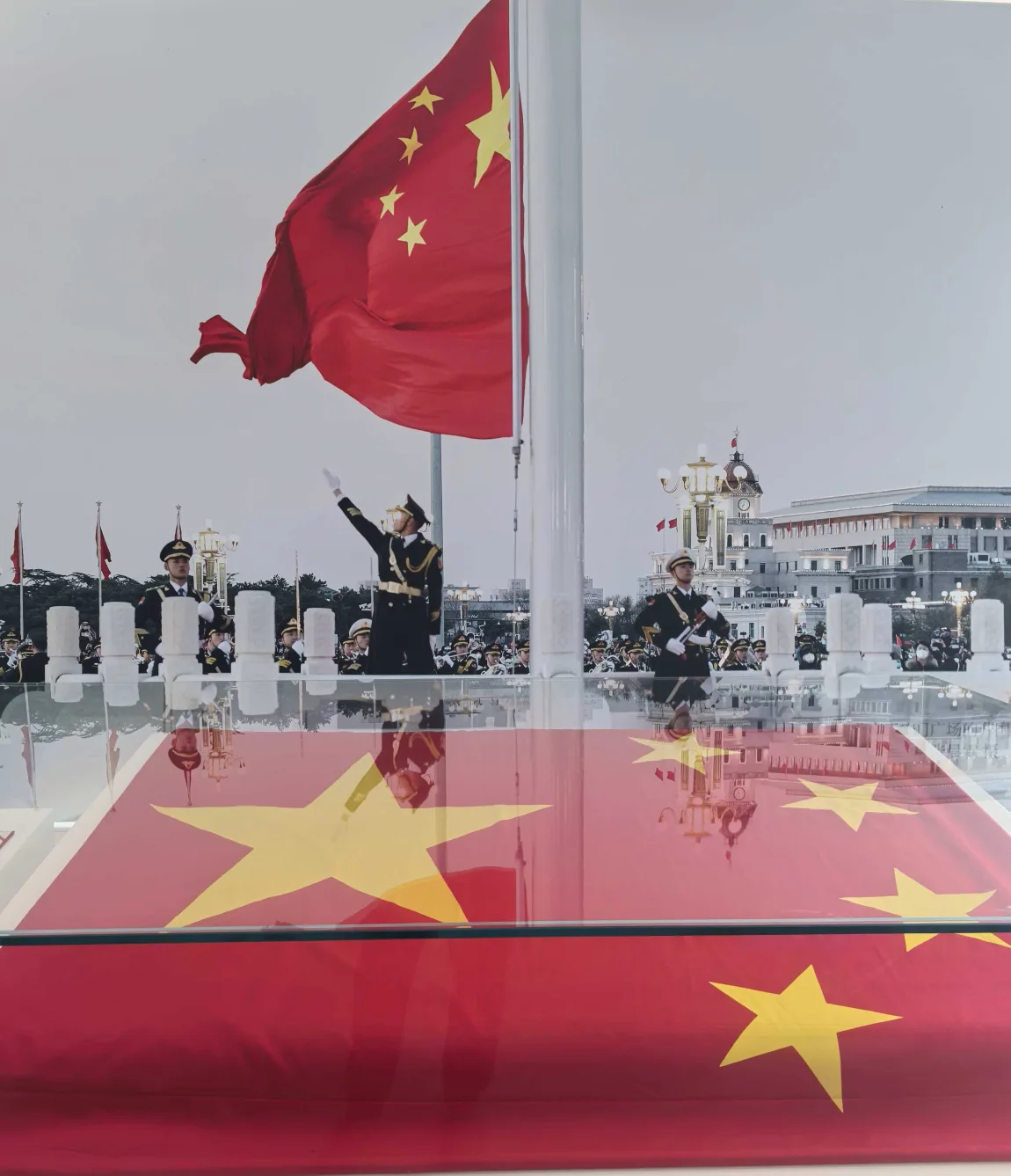当五星红旗迎着朝阳冉冉升起,那抹鲜艳的中国红在风中飘扬,整个广场都安静下来,只有国歌在耳边回响。