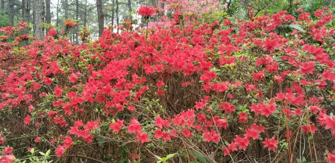 山间漫山遍野的杜鹃花肆意盛开,漫山红遍,层林尽染,风吹过的时候,连空气都带着红色的浪漫。