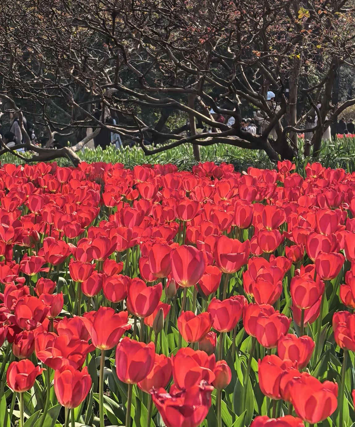 公园里成片的郁金香热烈绽放,像一团团燃烧的火焰,把整个春天都染成了热烈的红色;