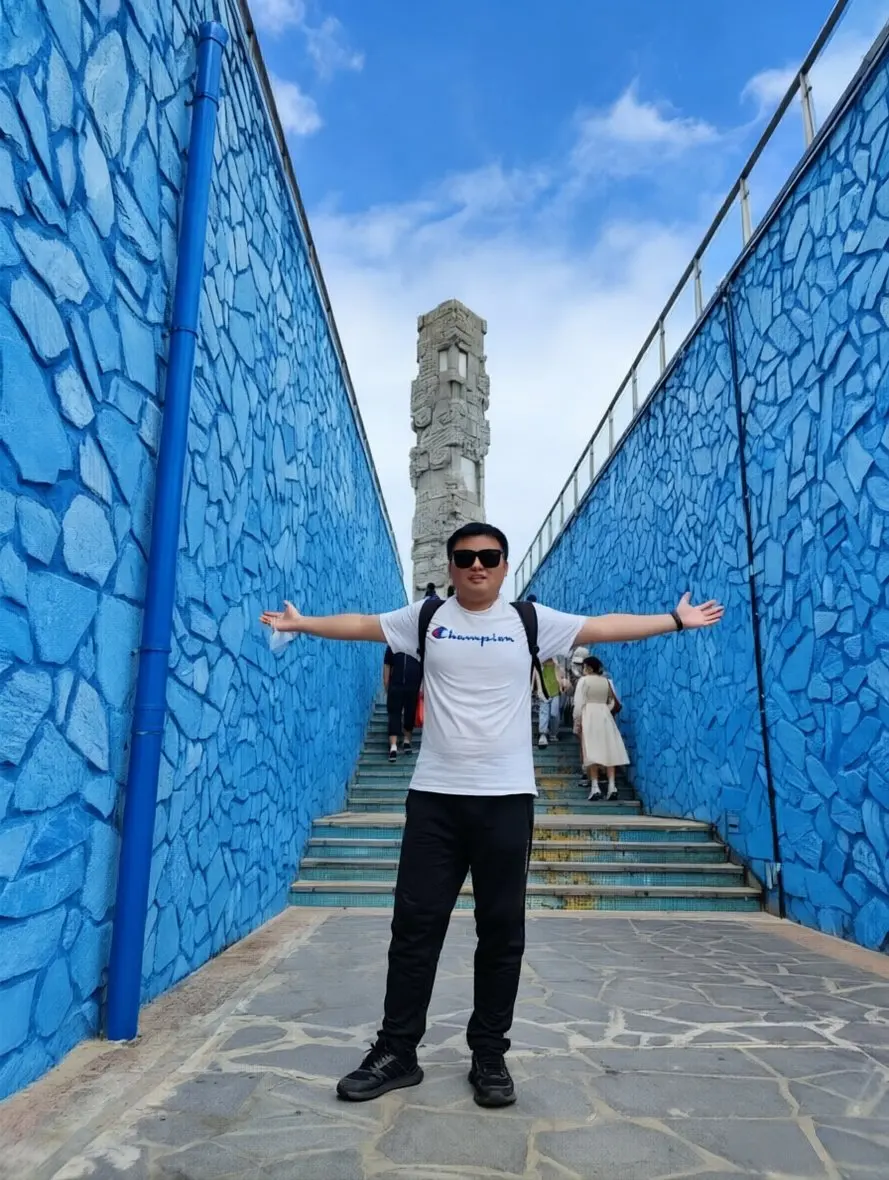 图6️⃣是亚龙湾中心广场,我身后的是广场的标志性建筑——图腾柱,网红打卡地📸📸~干净通透的蓝铺满视野,石墙清蓝雅致,天空干净浅蓝,层层蓝调交织,勾勒出浪漫又治愈的海边风光。