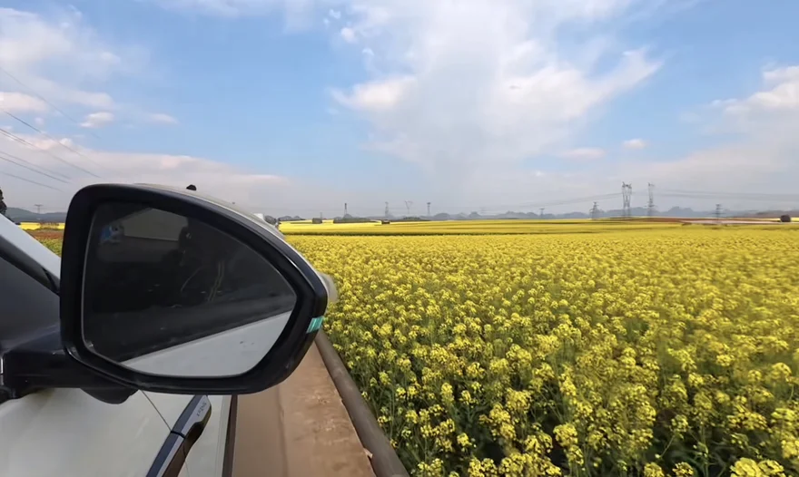 四月的无锡,春意正浓。趁着周末,我驾驶小鹏G6驶离城市喧嚣,奔赴一场与油菜花海的约会。流线型的轿跑车身划过乡间公路,全景天幕将沿途的绿意与蓝天尽收眼底,心情也随之轻盈起来。