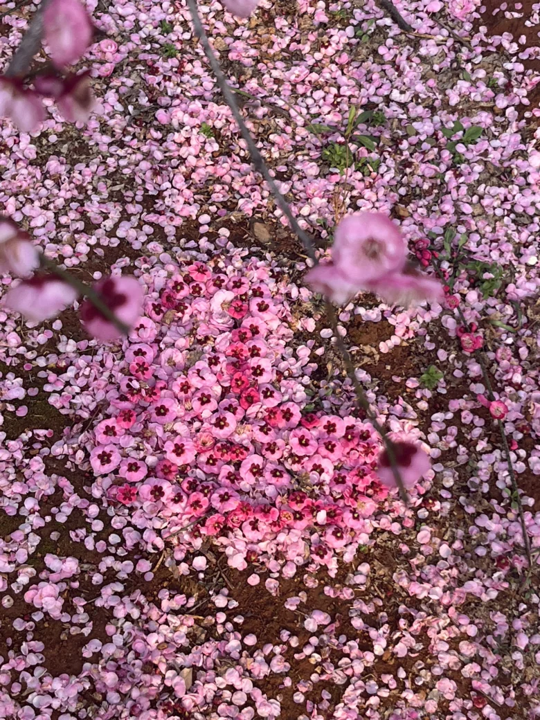 图六 一家人出门去看樱花,经过一夜的大风,花都被吹落了,一地的花瓣,虽然都吹落了,但是也有了另外一番景象