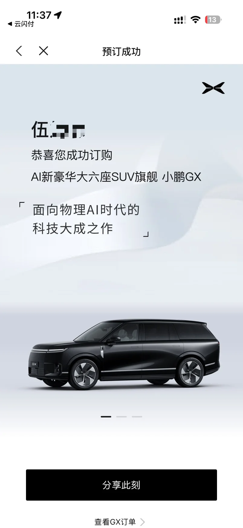 听说小鹏GX很牛,冲动小定了一台六座旗舰SUV,每一个座驾都很舒服。基于SEPA 3.0物理AI架构,线控转向+后轮转向,大车灵活好开。3000TOPS智驾算力,XNGP全场景覆盖。六座大空间,第三排舒适,后备很大听说还能直接躺。纯电/增程同价满足不同人的选择,增程综合续航1400km。航空级六重安全冗余,安全拉满。面向L4时代,适合我家一家6口之家……