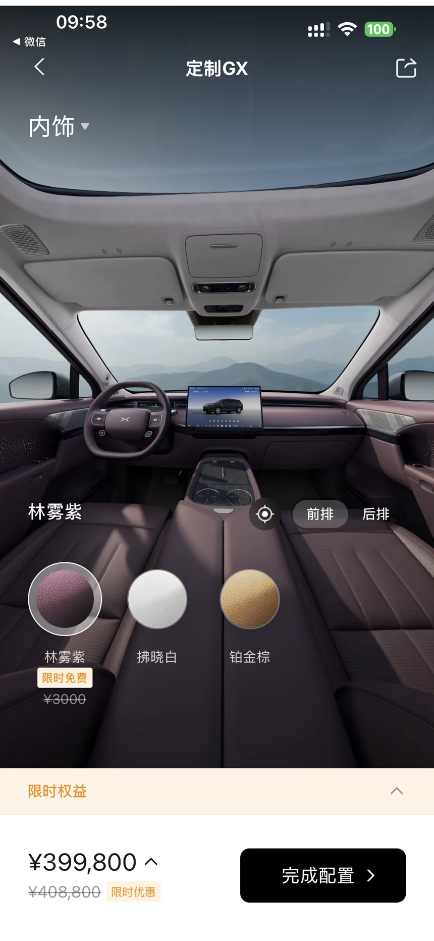 豪华配置:三排均配备加热/通风/按摩功能,二排零重力航空座椅、21.4英寸吸顶屏、33扬声器音响(2032W功率)、AI无菌风冷冰箱等