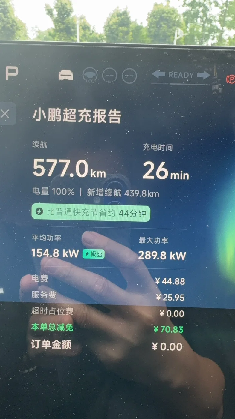 体验小鹏超充,真的快。最后几公里也充的紧实,没有直接跳到满,感觉虚电不多。