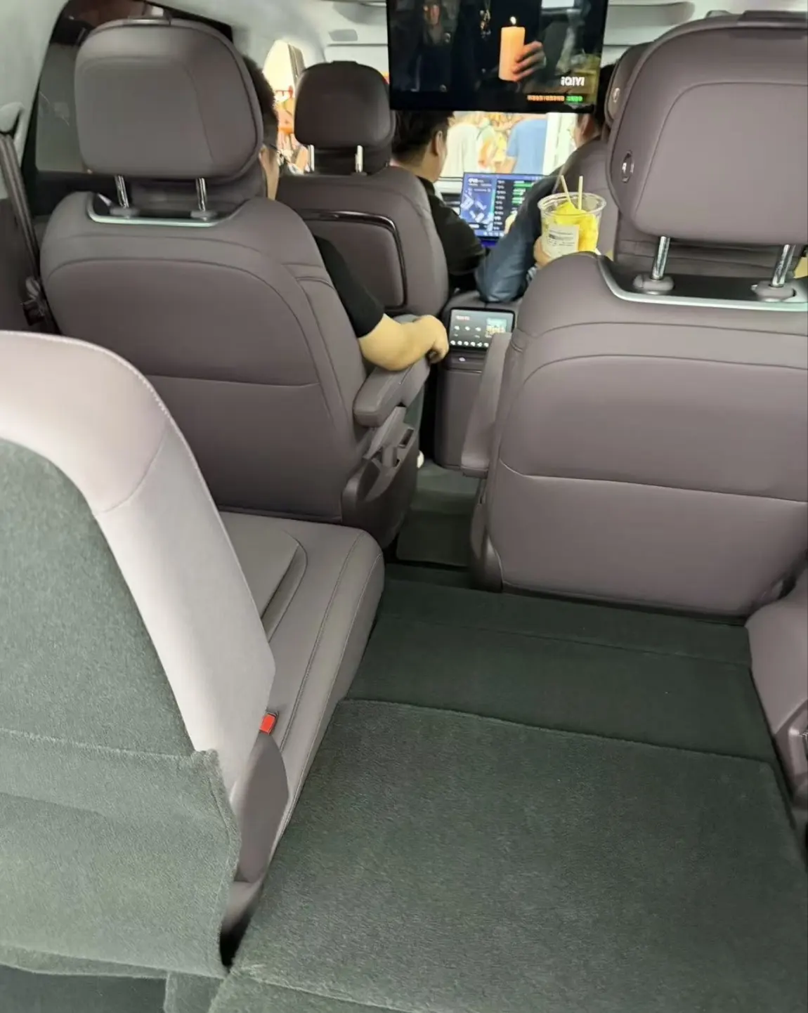 2+2+2六座布局,三排电动三折叠是同级一绝 。一键即可电动收纳,第三排能180°平躺,彻底告别“小板凳”。二排零重力座椅带按摩、通风、加热,腿托展开后堪比头等舱 。更有0.16秒AI隐私玻璃,一键切换透明/隐私,防晒又私密 。