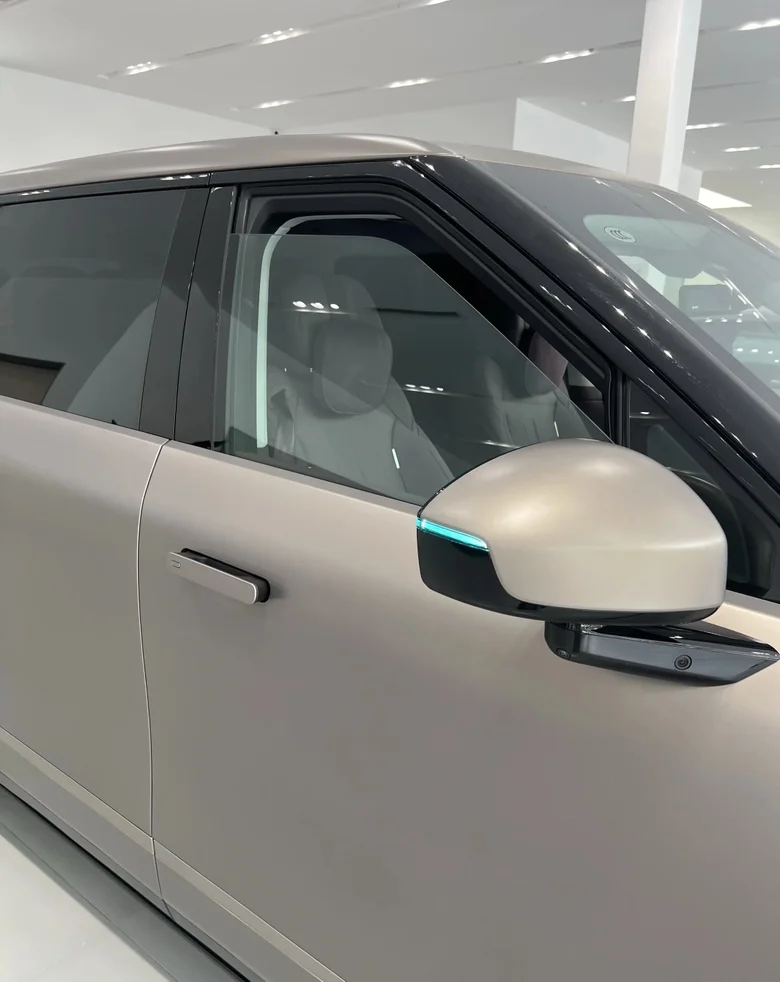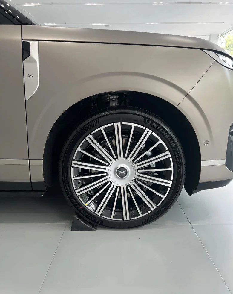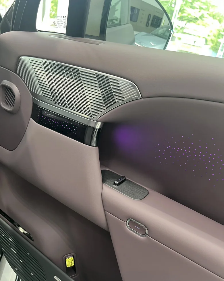 一眼就被太空陶瓷24K金标惊艳到!航天级氧化锆陶瓷搭配PVD真空镀金工艺,质感堪比金刚石,洗车万次都无划痕,细节里全是旗舰底气💫。DLP大灯自带投影功能,夜晚点亮超有仪式感;22英寸前后鸳鸯胎悬浮轮毂+一体式蚌式尾门,游艇式流线车身线条硬朗,同级最大寰宇天地前后贯穿灯点亮后辨识度拉满,开在路上回头率绝对爆表!隐私玻璃加持,兼顾质感与私密感,每一处设计都透着大气科技范。