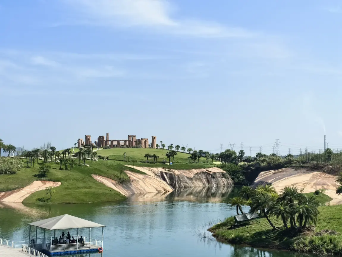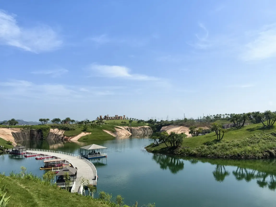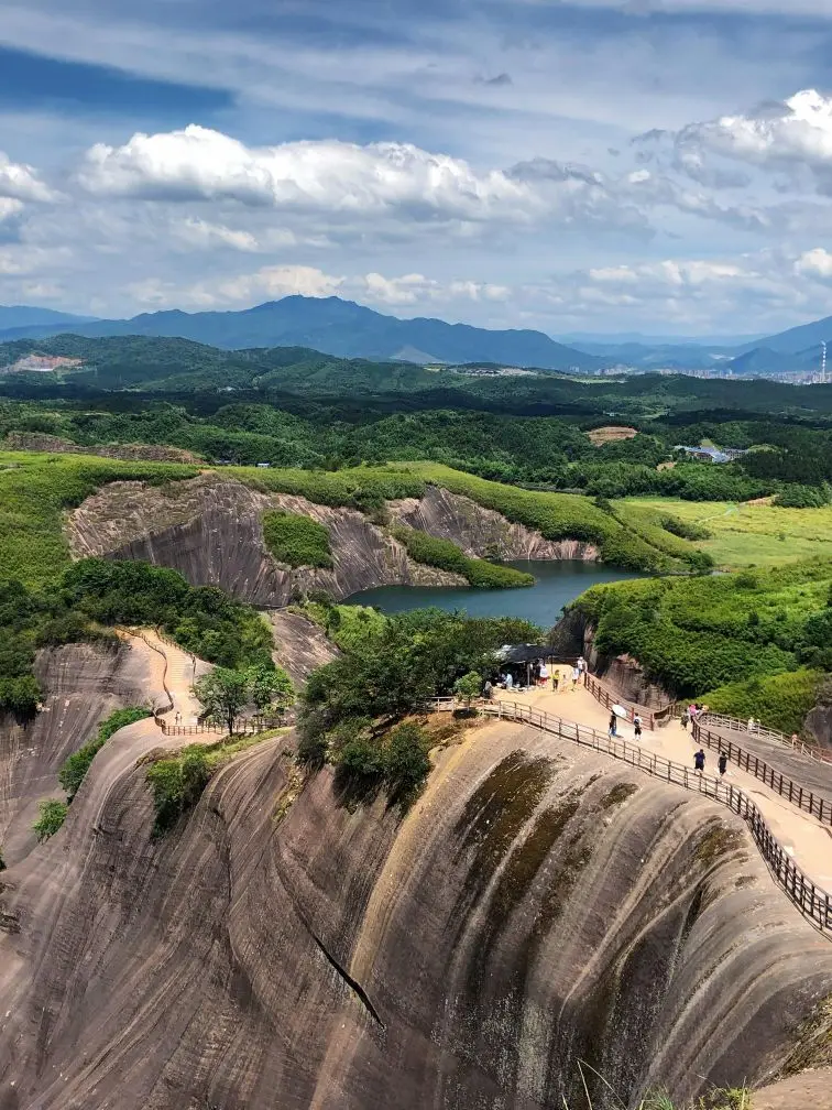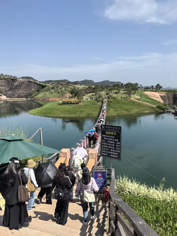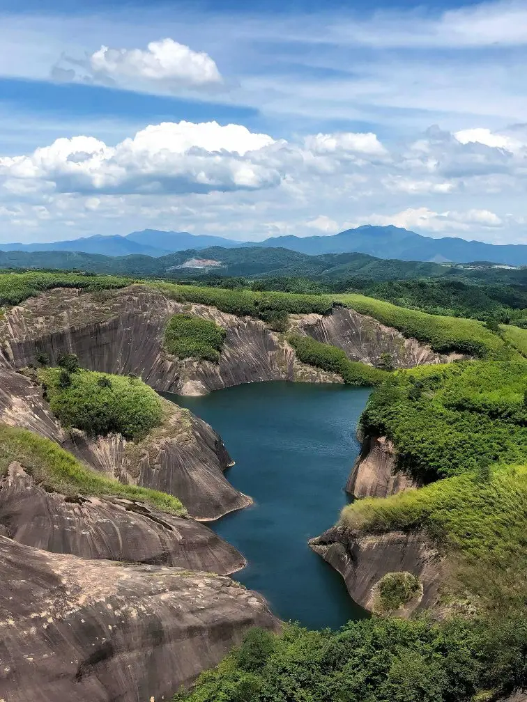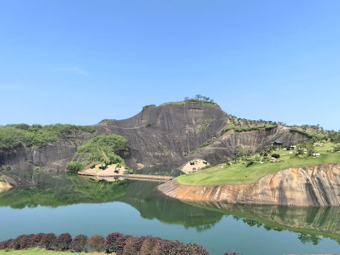 这里没有网红滤镜,只有最原生的震撼——赤红的丹霞山体被绿水环抱,岩壁上的水流痕迹像大地的肌理,阳光洒下时,红岩与碧水撞出油画般的质感。山脊如巨龙脊背蜿蜒,两侧是深不见底的峡谷,站在栈道上,风从山谷里穿过,脚下是被称作“巨蜥湖”的碧绿水洼,像一块翡翠嵌在红岩之间。