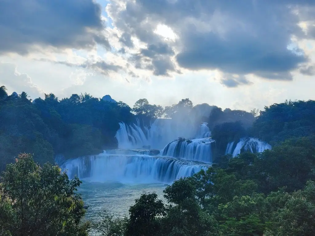 #户外主题色# 爱就像蓝天白云~晴空万里~我的主题色是蓝色~广西太适合自驾啦,崇左瀑布风景超好,个人觉得比黄果树瀑布体验好,虽然没有黄果树瀑布壮观,但是胜在体验更佳近距离,人少,并且可以看夜景。缺点是吃的太难吃了😩千里江山图一定要去打卡(超级出片),无需门票。广西的海鲜太划算了,去海鲜市场自选,人均不到一百吃到撑。这边住宿也很便宜,全季也就一两百,性价比太高啦。吃的好住得起也不错,还很便宜。有山有水,好嗨哦~😃😃