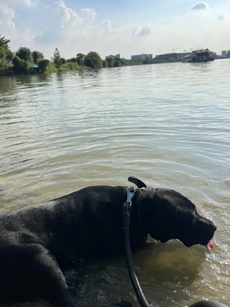 (拉拉)一靠近河边,它就兴奋得不行,尾巴摇成小马达,脚步都轻快起来。刚解开牵引,它就迫不及待冲进水里,清凉的河水瞬间包裹住它,暑气全消。它在水里扑腾、转圈、甩水花,玩得忘乎所以,湿漉漉的毛发贴在身上,吐着舌头笑得一脸满足。
