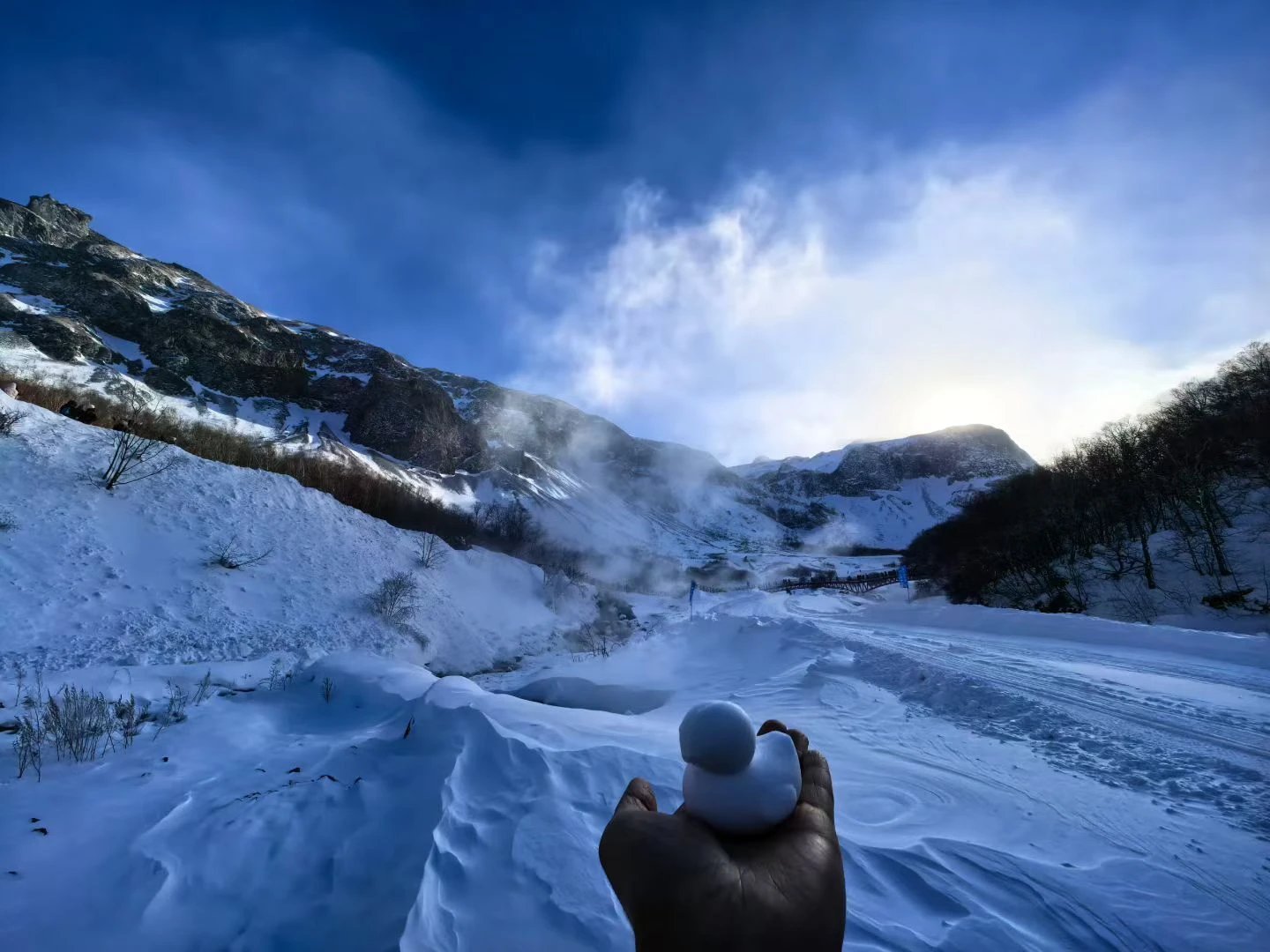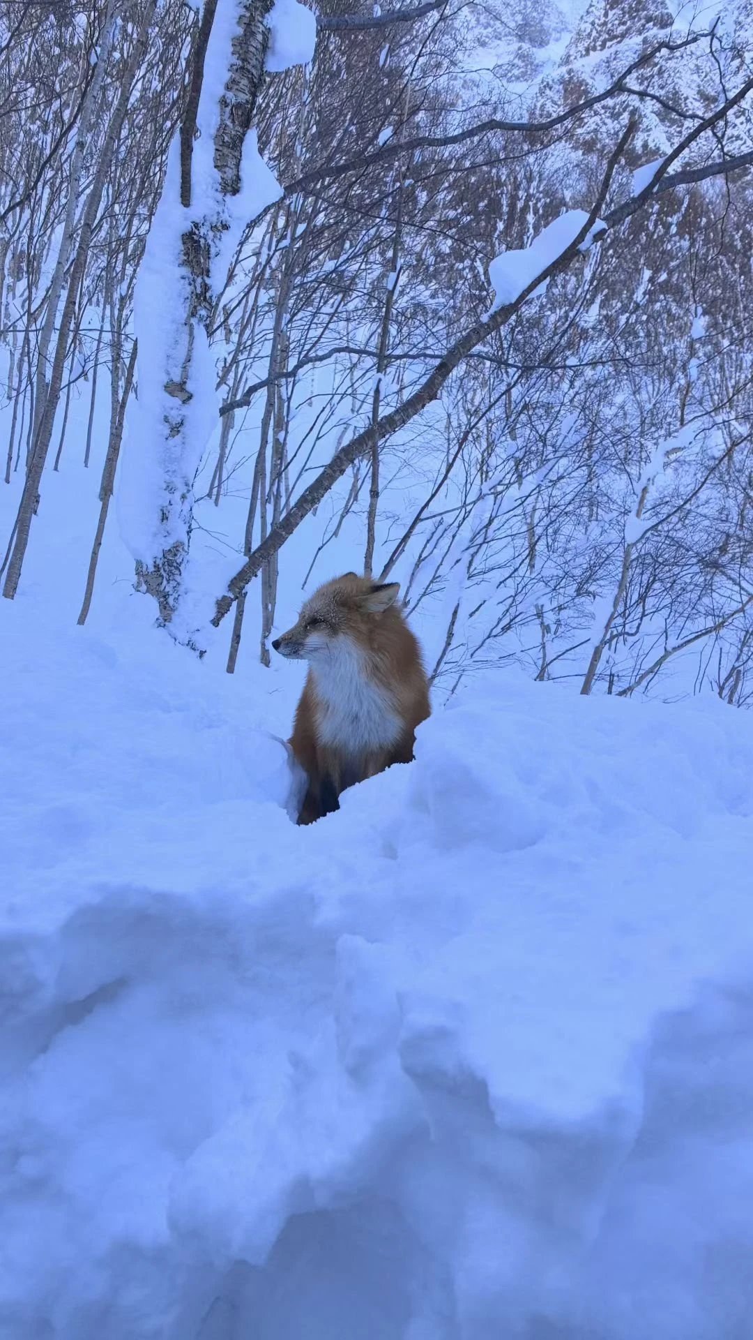 山下风光同样治愈,在林间栈道偶遇一只灵动的野生赤狐,它拖着蓬松的红尾,在雪地中好奇张望,圆溜溜的眼睛像藏着星光,为这片静谧山林添了一抹鲜活的温柔🌿