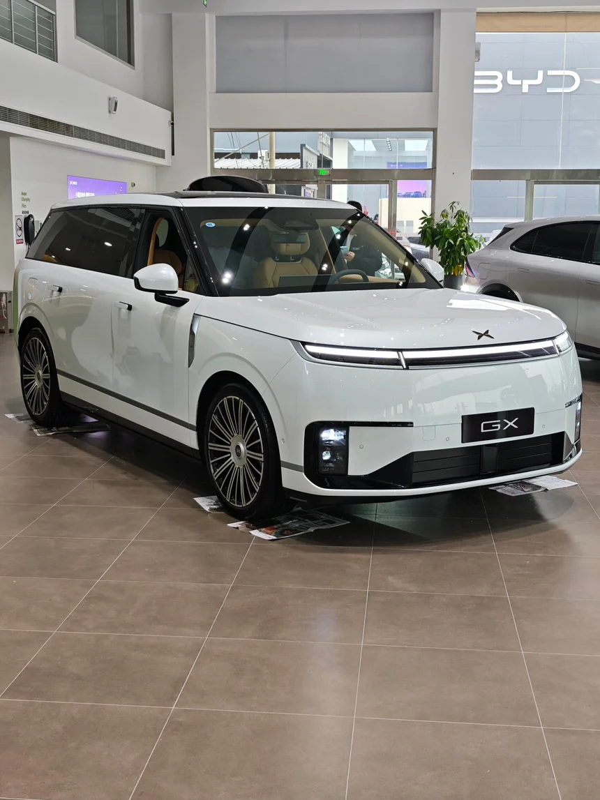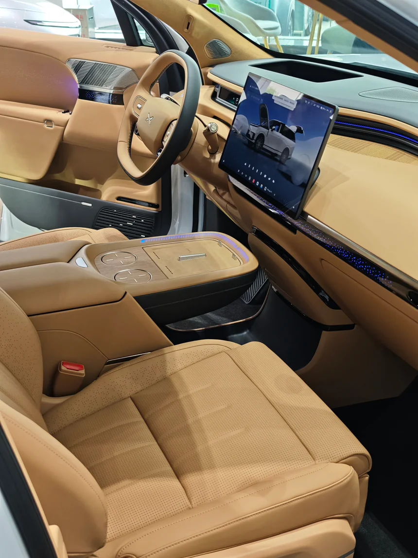 今天下班路过家门口小鹏店,看到GX展车到了,赶紧溜进去瞄了一眼!白外棕内,这配色第一眼就爱了🥳