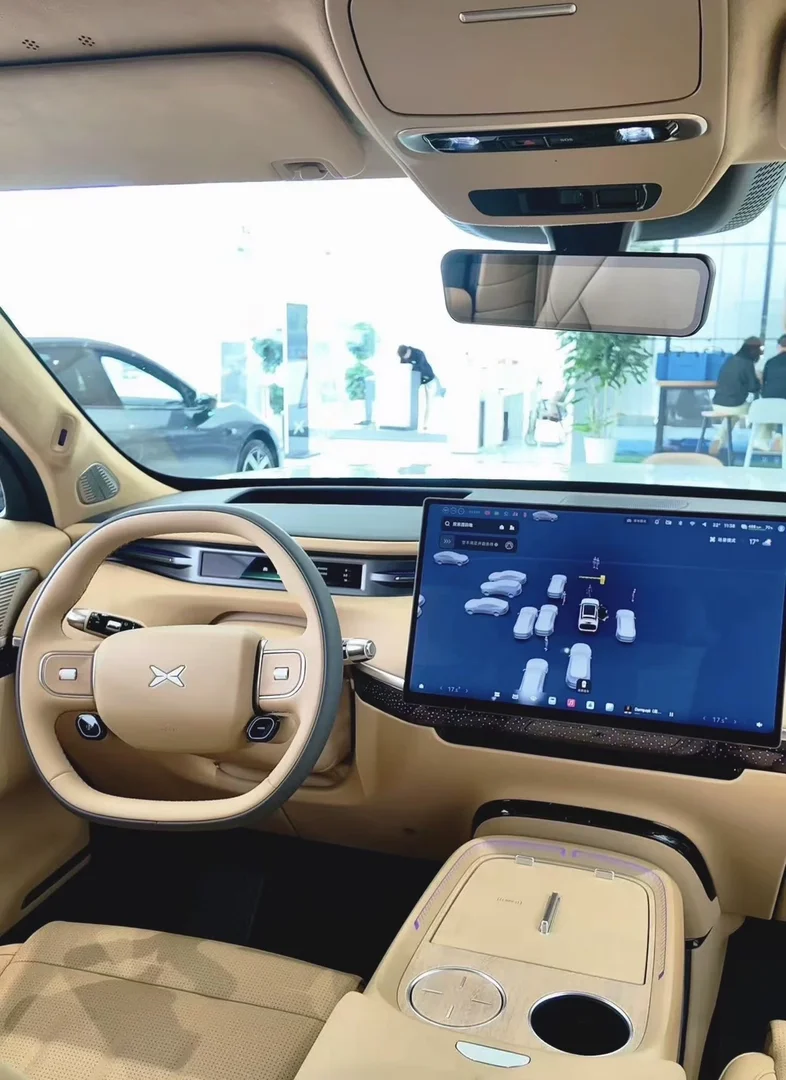 今天深度体验了小鹏GX,实车的气场完全超出了预期。外观上,DLP大灯与寰宇天地贯穿灯的组合极具辨识度,22英寸悬浮轮毂搭配太空陶瓷24K金标,细节处尽显豪华。智能电动门和0.16秒响应的AI调光隐私玻璃,让上下车仪式感拉满。