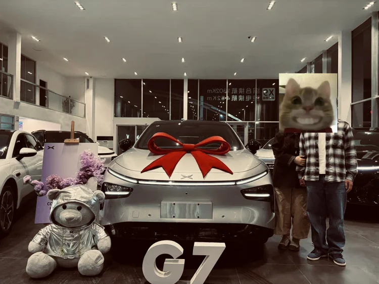 #我的提车作业# 从G6到G7,终于等到你! 从关注G6开始就喜欢上了小鹏的年轻化设计和那些充满巧思的小细节,尤其是可以自定义的智慧场景。从G6到G7都试驾了好几次,提车前做了不少功课:对比配置、研究权益、薅积分羊毛,建议大家一定提前确认地方补贴政策。 提车服务很贴心,交付专员耐心讲解车机功能,仪式感满满。打开车门那一刻,简约科技风扑面而来——宽敞的后排、丝滑的车机、氛围灯亮起的瞬间,一切都值了! 年轻向上的理念,G7全都接住了。期待有了小7以后的日子!