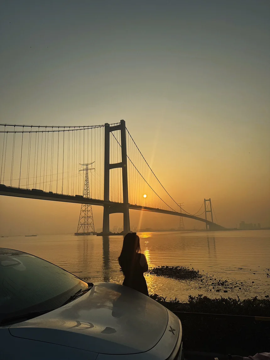 城市还未完全苏醒,晚风裹着江水的潮气,车子停在大桥边,静静等待天光慢慢亮起。