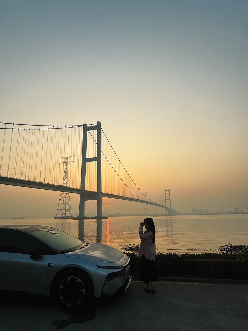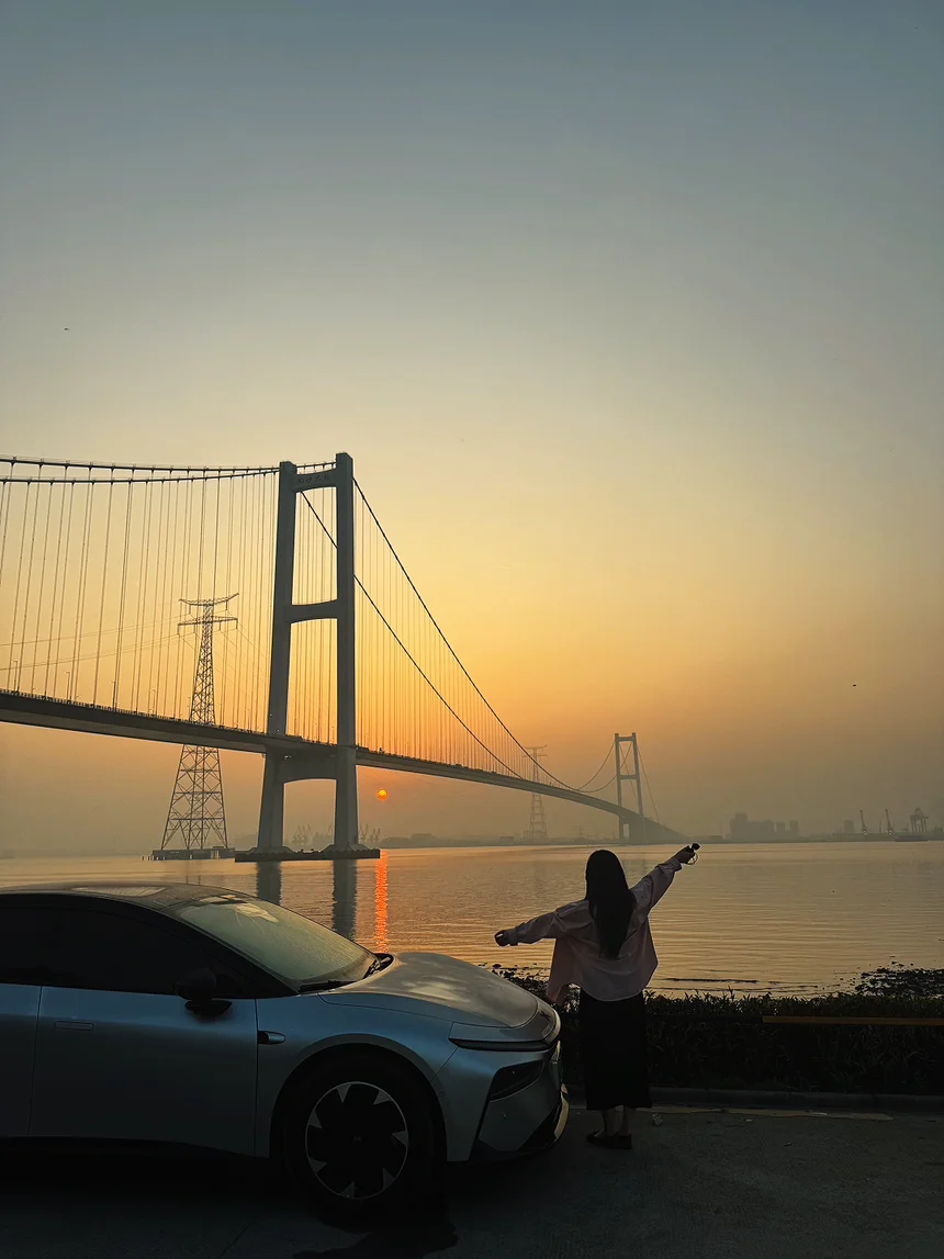 凌晨说走就走,约上最合拍的搭子,开着小鹏P7加一路奔赴江边,去等一场橘子海日出。