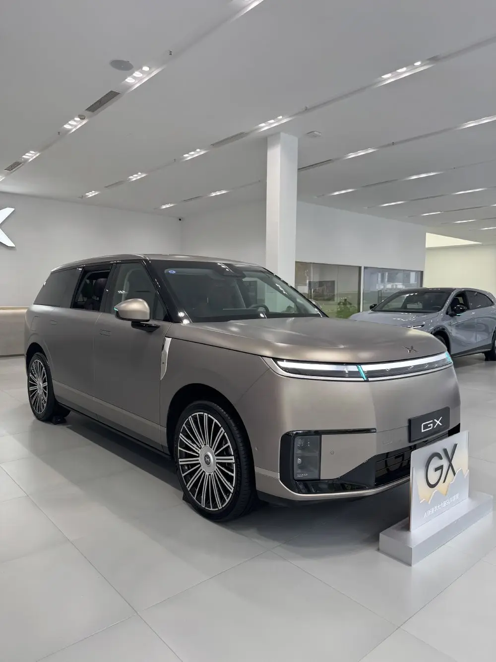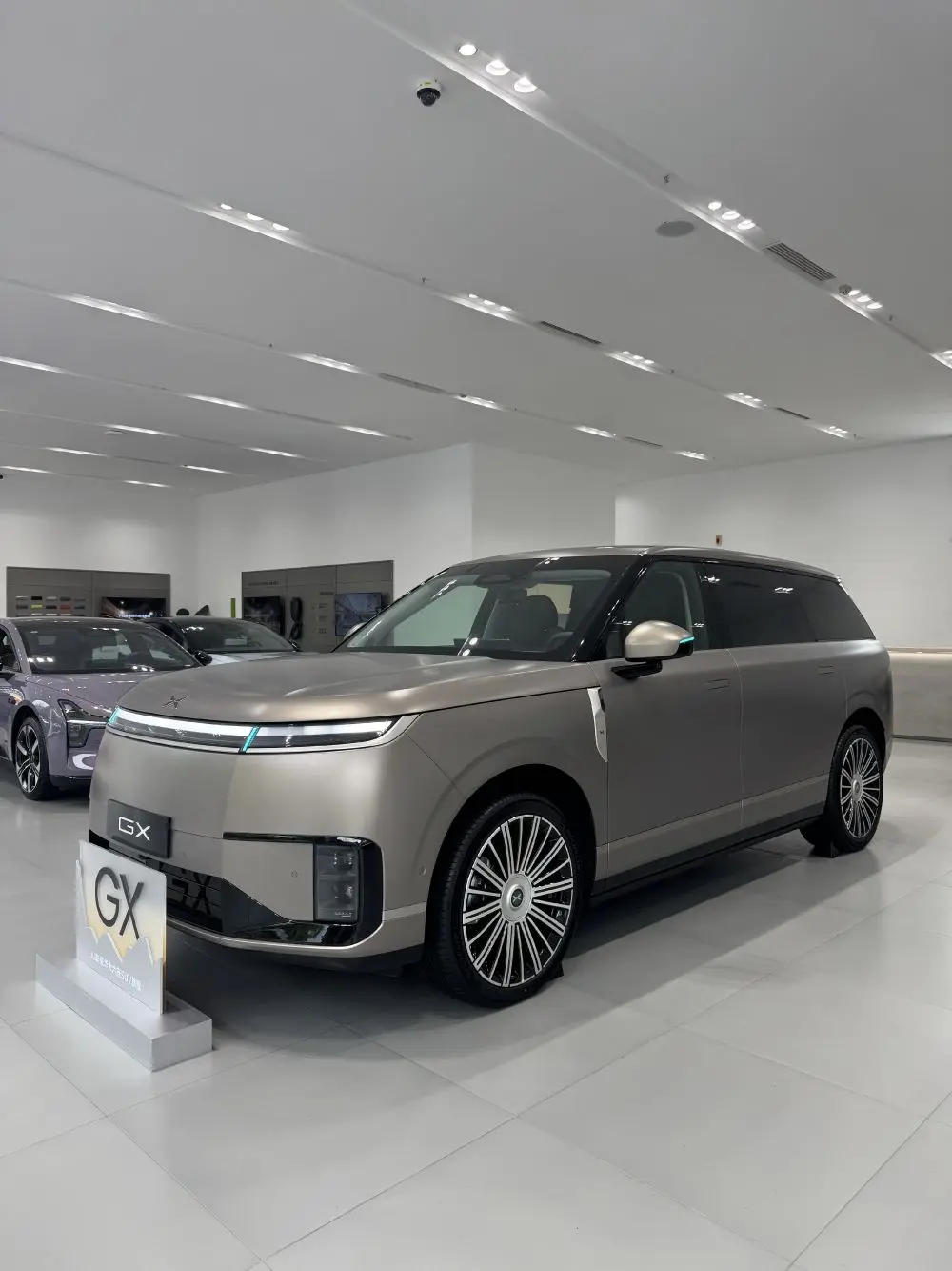 到店观看小鹏新作:外观感受:隐私玻璃很强大、22英寸前后鸳鸯胎悬浮轮毂贼拉帅、首发太空陶瓷24K金标很酷、外观看着感觉就一个字,大!内饰感受:线控方向盘、ARHUD、领航悬浮中岛智能升降⼿机充电台,适配折叠屏,氛围灯显⽰充电状态科技感十足、细节拉满;空间感受:一二三排乘坐空间很舒服,大沙发完美;座舱功能体验:冰箱彩电该有的也有、33扬声器让人感觉很震撼,前后独立音区还互不打扰,牛逼闪闪。