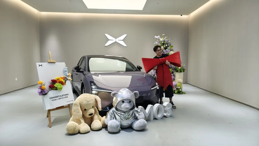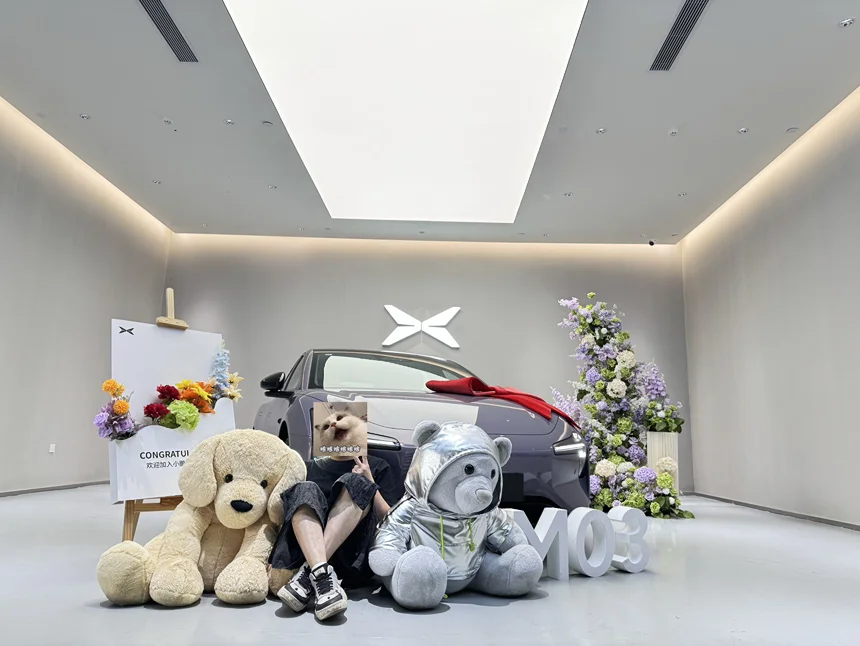 去年在商场逛了狂就觉着这小鹏m 03很好看,今年出新款了,这个紫色太吸引我了,4月一出就去试驾,马上就订了,一星期不到就提车太开心了。
