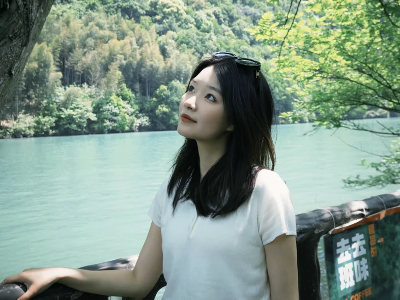 沿着江边慢慢走,抬头是被新叶染透的天空,阳光透过树叶的缝隙洒下来,在地上投下斑驳的光影;低头是映着绿树的水面,连波纹都带着温柔的绿意。远处的青山裹着薄雾,近处的田野铺着嫩得发亮的新绿,还有路边不知名的小草,都在用力地生长着,全都是舒服又治愈的颜色。