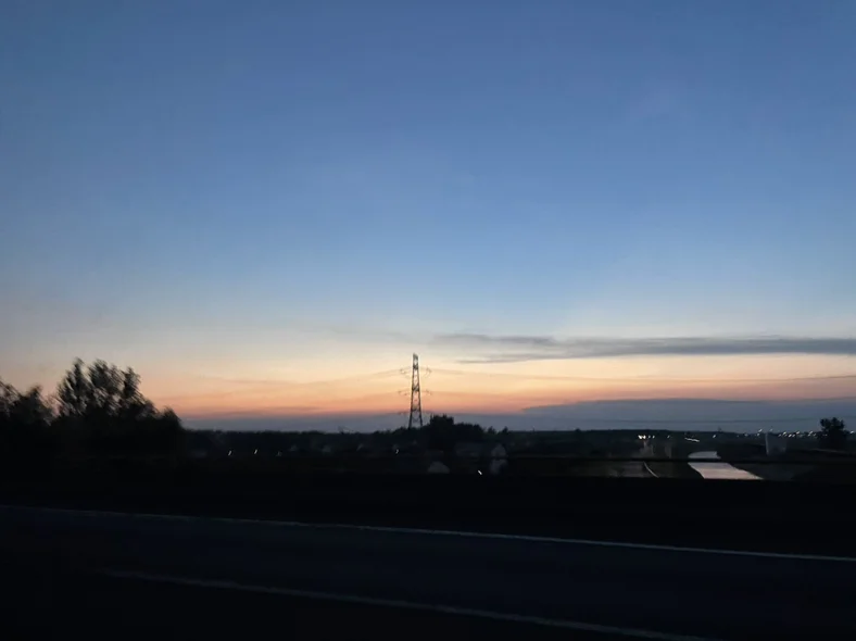 还有路边的晚霞、天际的落日,一朵孤零零飘在蓝天上的软乎乎的云,还有公路尽头被夕阳染红的地平线。这些风景,没有特意奔赴,没有提前规划,只是在赶路的间隙,透过车窗往外看,就撞见了一整个世界的温柔。