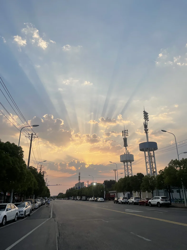 也有开车路上意外撞见的彩虹,在云层里偷偷露出半段,像天空递来的、独属于我的小惊喜;傍晚时分,从云层里漏下来的丁达尔光,一束束洒在马路上,给路过的城市都镀上了一层温柔的滤镜;还有夜晚从天窗里抬头看见的烟花,炸开的瞬间,连车里的风都带着热闹的烟火气,把赶路的疲惫都炸成了细碎的快乐。