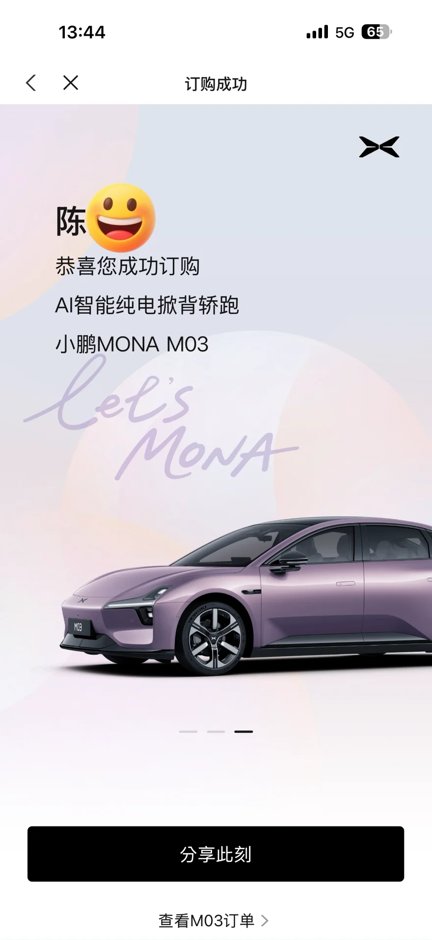 谁能拒绝紫外紫内的小鹏MONA M03啊!!里外统一的紫色真的又小众又高级,一眼沦陷,纯电轿跑线条超惊艳,内饰氛围感直接拉满。试驾之后操控超好开,日常通勤毫无压力,思考再三果断锁单下定,坐等属于我的紫色浪漫座驾落落地😚😚#小鹏MONA M03#