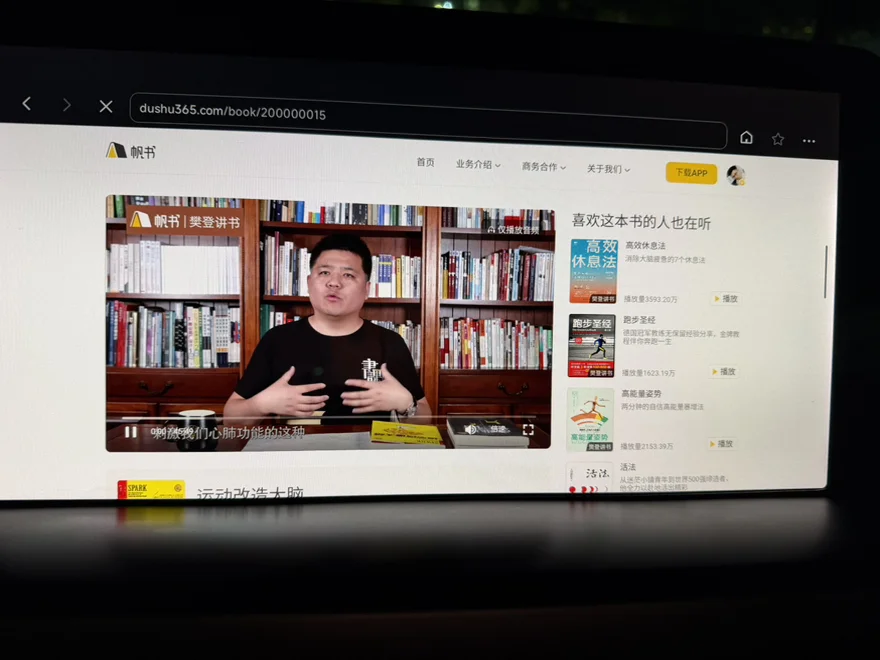 为了弥补不足,我开始尝试手机投屏的方式。将樊登读书的视频内容投射到P7中控大屏,在车辆充电、路边等人的碎片化空档里静心学习。但这种方式依旧存在局限,需要手机全程亮屏运行,耗电快、操作繁琐,使用起来不够便捷,只能勉强满足临时学习的需求。