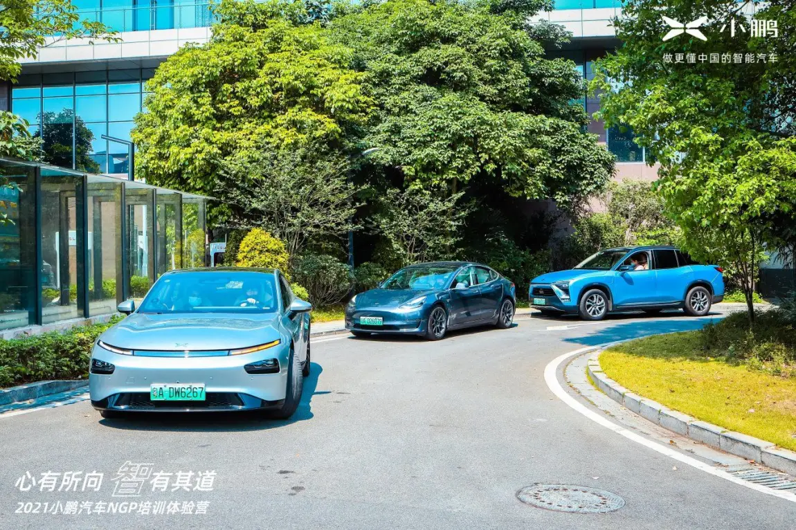 试驾车有四辆,两辆 P7,蔚来ES8和特斯拉Model3各一辆,没有比亚迪汉,听说它没领航辅助系统,所以不在这次对比范围内。