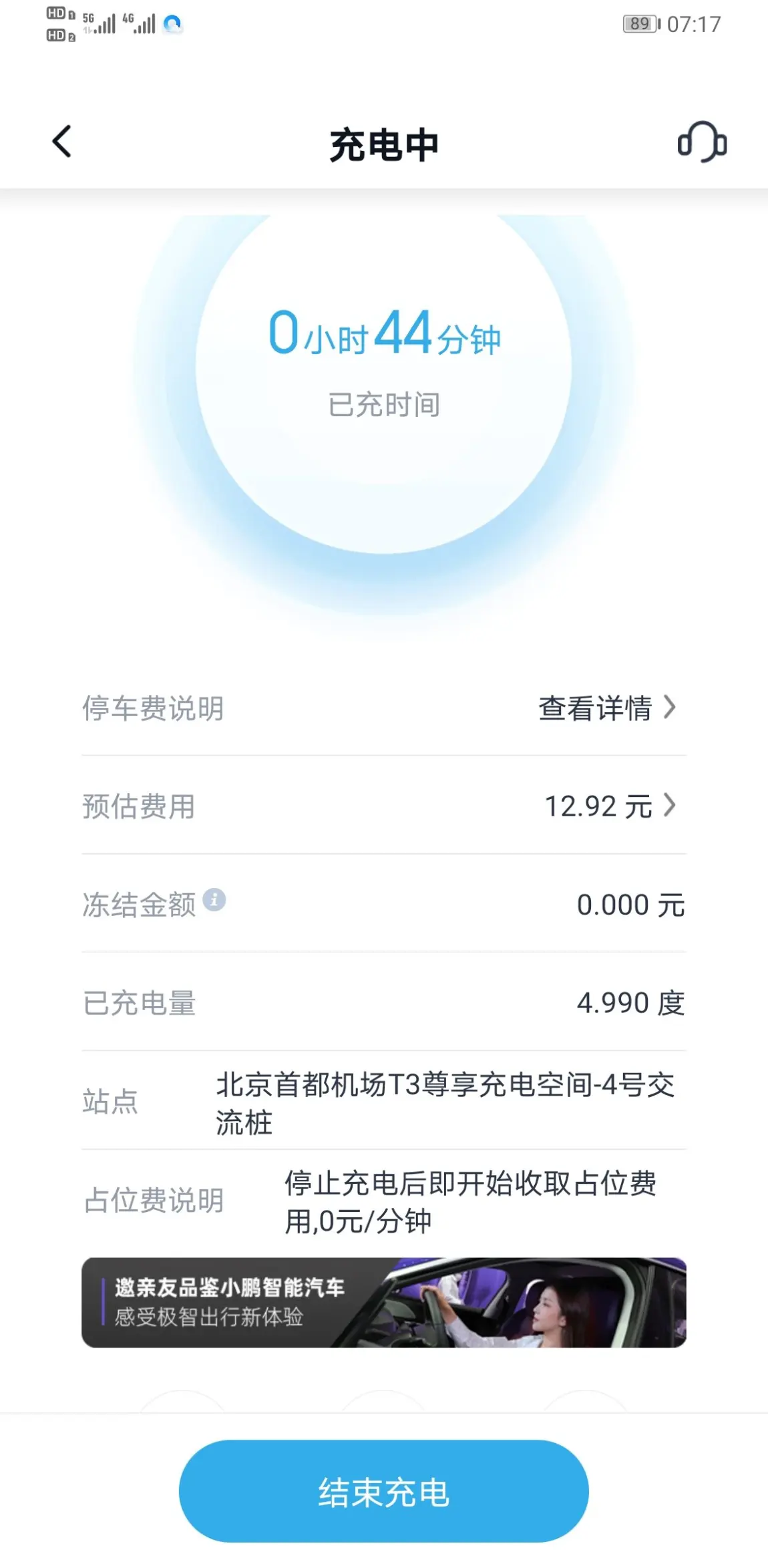 1.充电结束,致电机场小鹏专属停车位服务员,远程解锁,并由服务员拔枪,再远程锁车。(千万别一直不拔枪,影响其他鹏友使用)