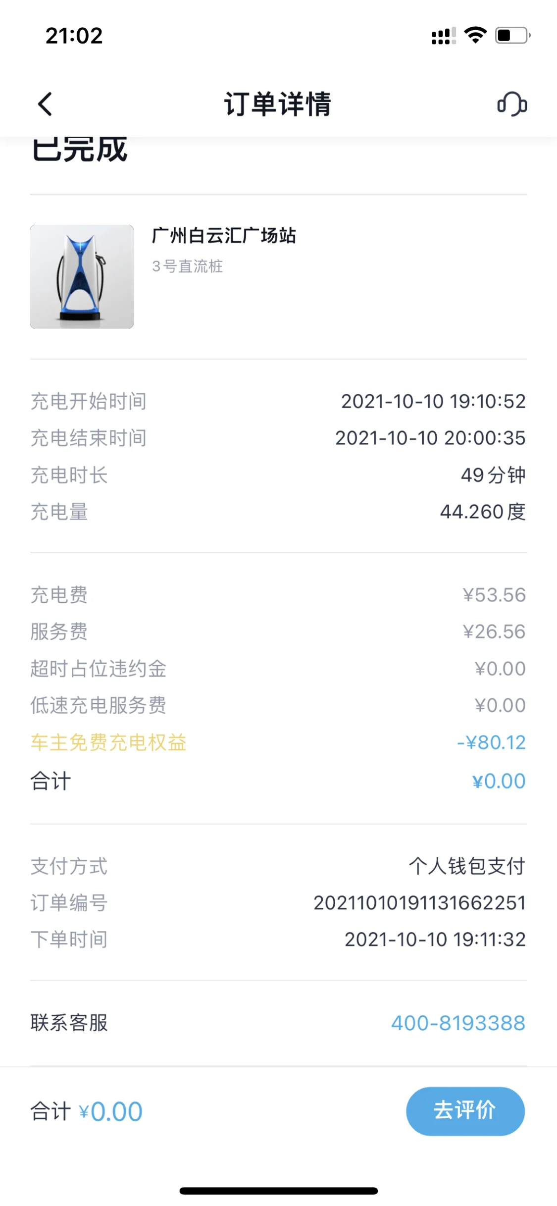 开始选择去的专享充电桩已满,客服来电提醒,不然就要等待了,果断更换到附近别的专享(广州专享多)。