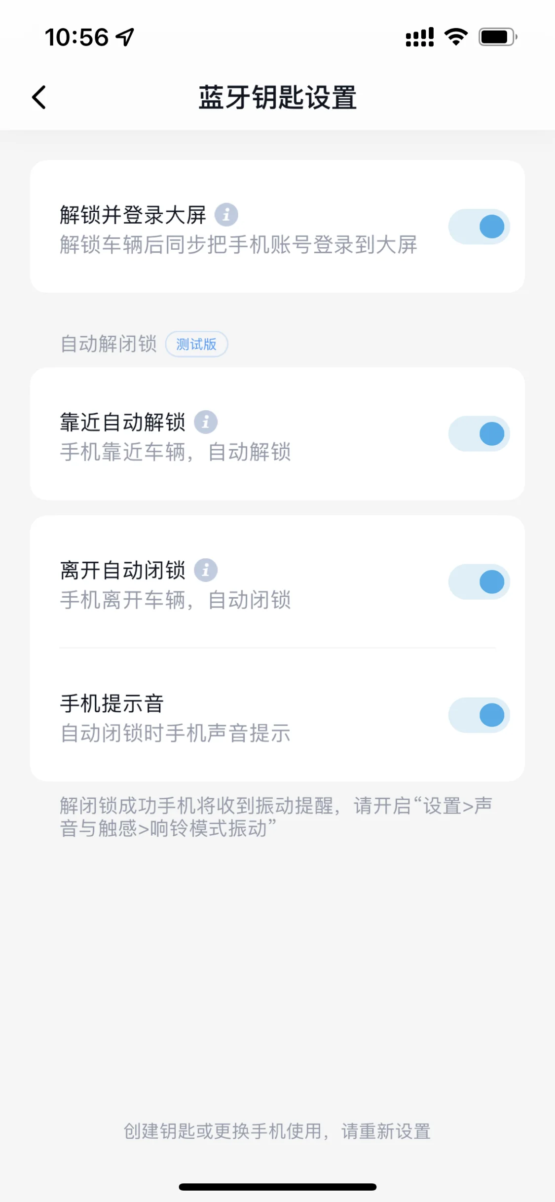 - 首先在App车控界面或数字钥匙管理 “ 创建蓝牙钥匙 ” 。创建成功后,车控界面显示 “ 蓝牙钥匙启动 ”